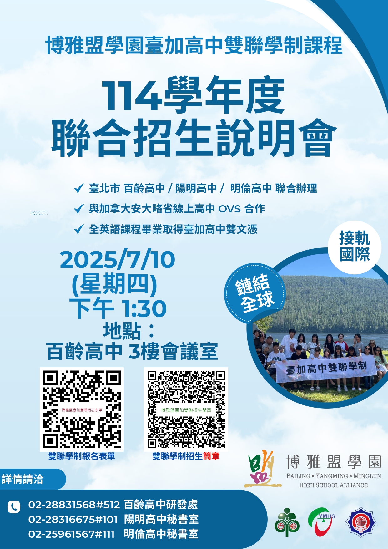 114學年臺加雙聯 新生報名表單與招生簡章(7/10~7/14 中午12:00) ,請掃描QR code