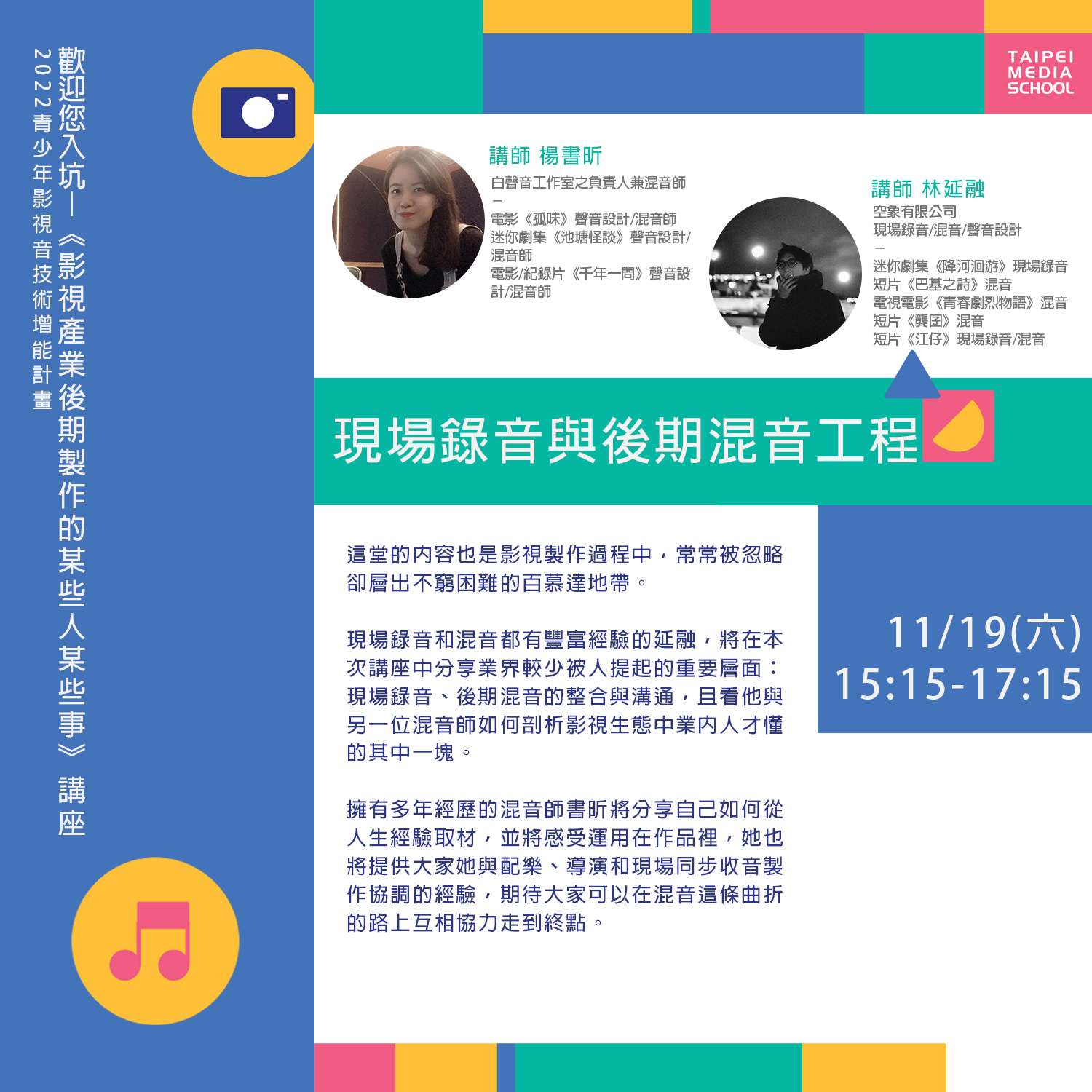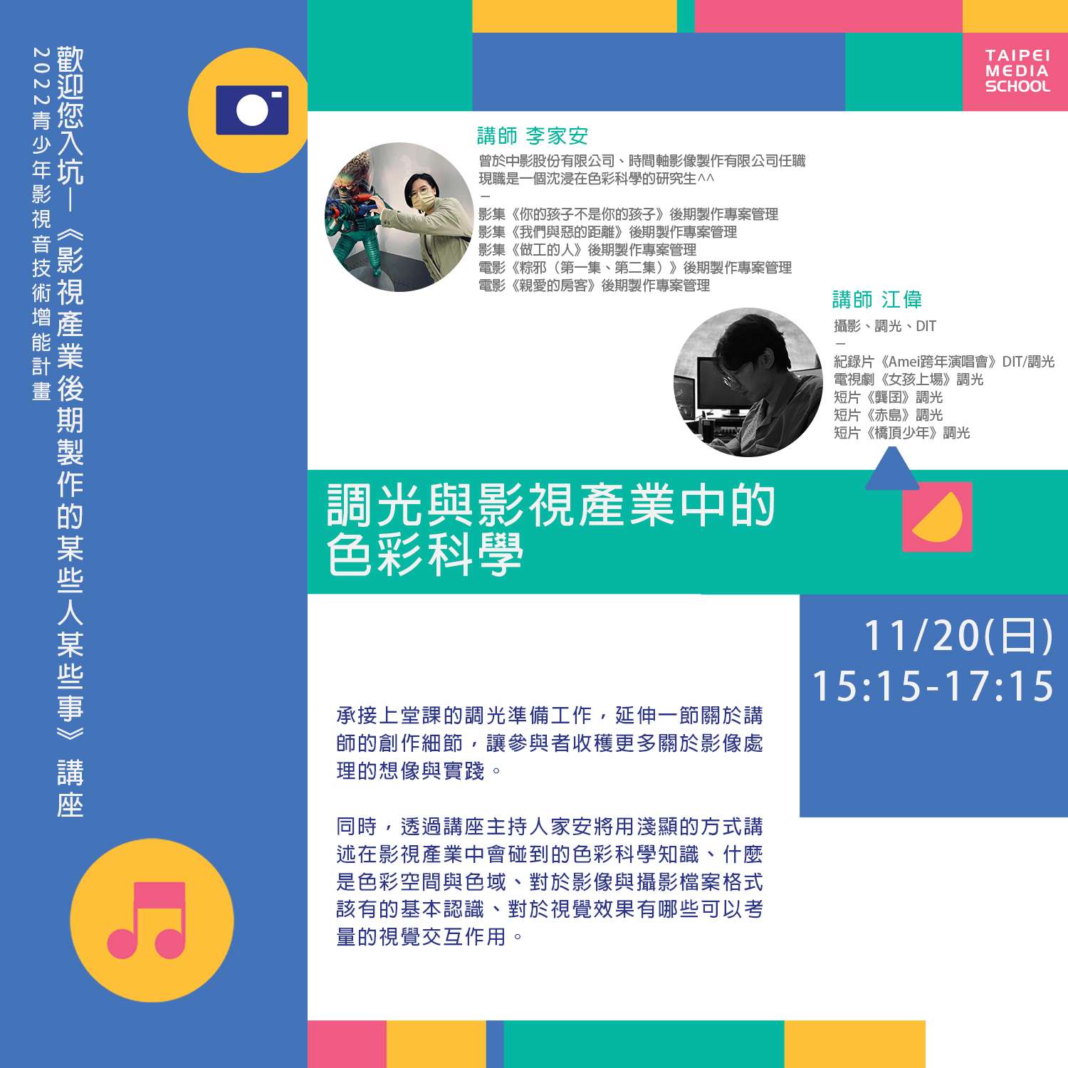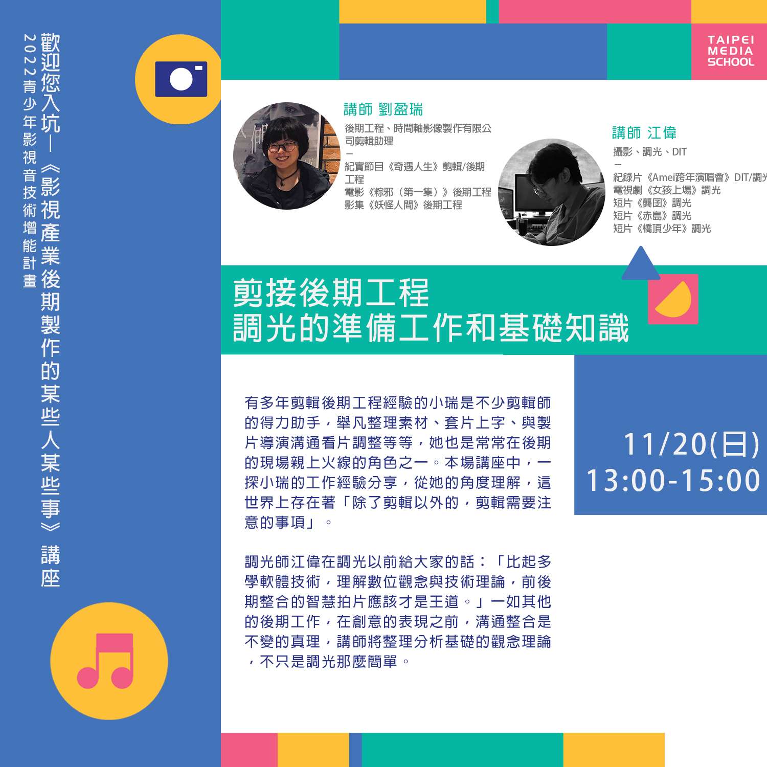 一、報名截止時間11/16(三)18:00,額滿將提前關閉表單, 影視從業人員及相關科系學生優先錄取。