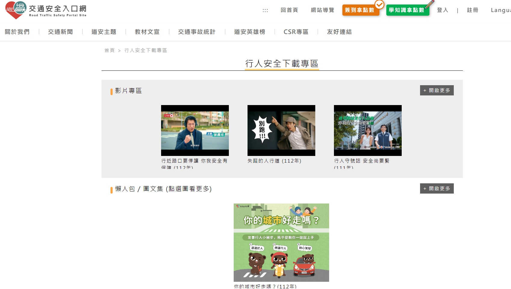 相關文宣素材資料可至交通部交通安全入口網(https://168.motc.gov.tw)/首頁/行人安全下載專區下載使用。