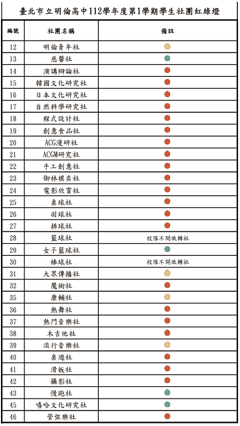 綠燈社團:5個名額以上