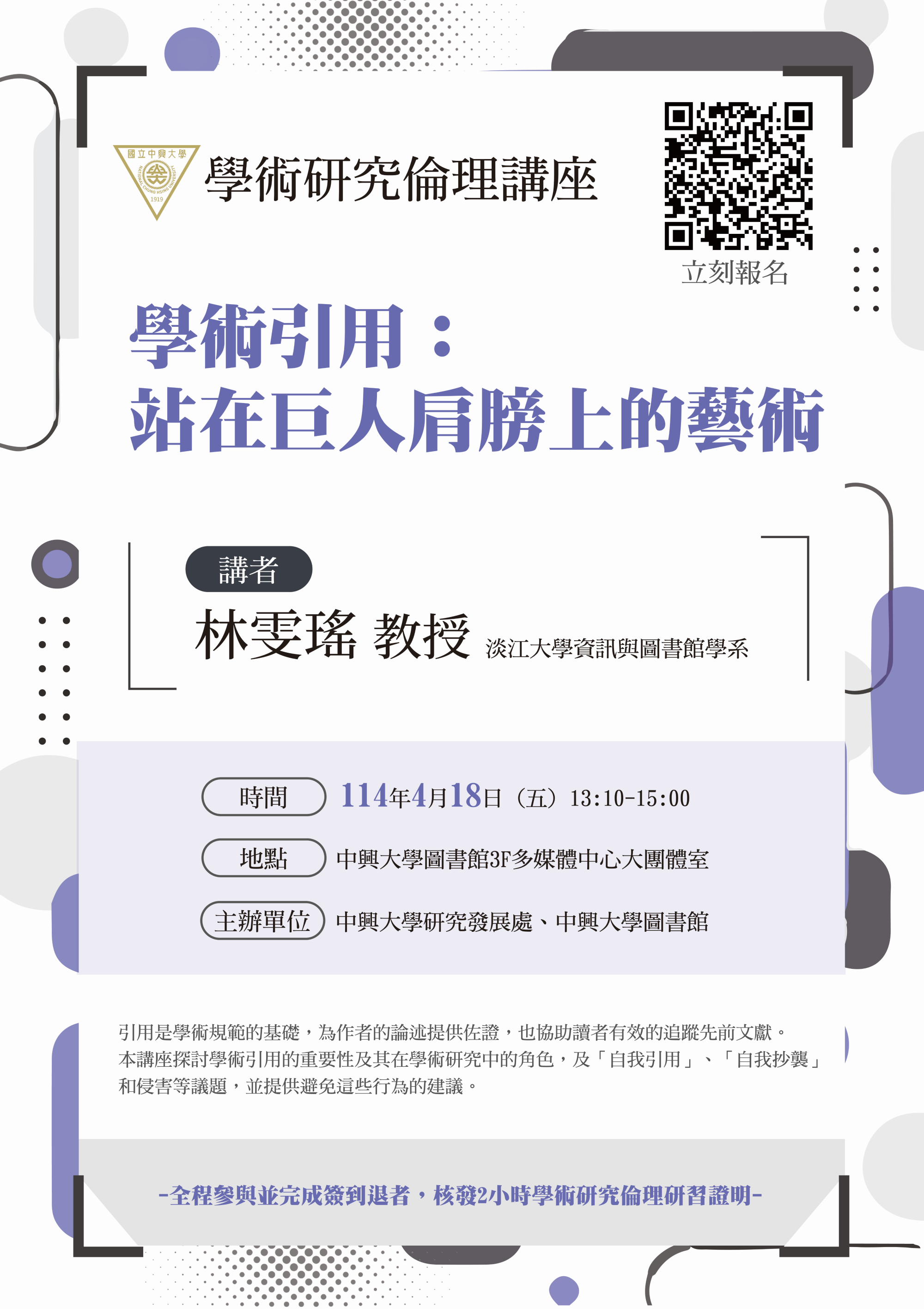 (二)時間:114年4月18日(五)下午13:10至15:00(12:40開始報到)。