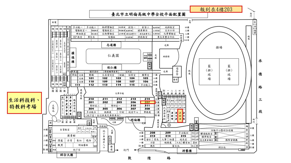 生活科技科、 特教科 | 203教室 | 203教室 | 207教室 | 207教室 |