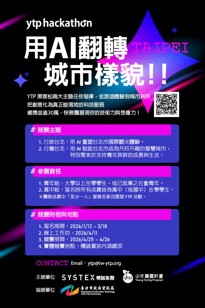📌競賽簡章及報名 請洽官網:https://event.systex.com/2026-ytphackathon