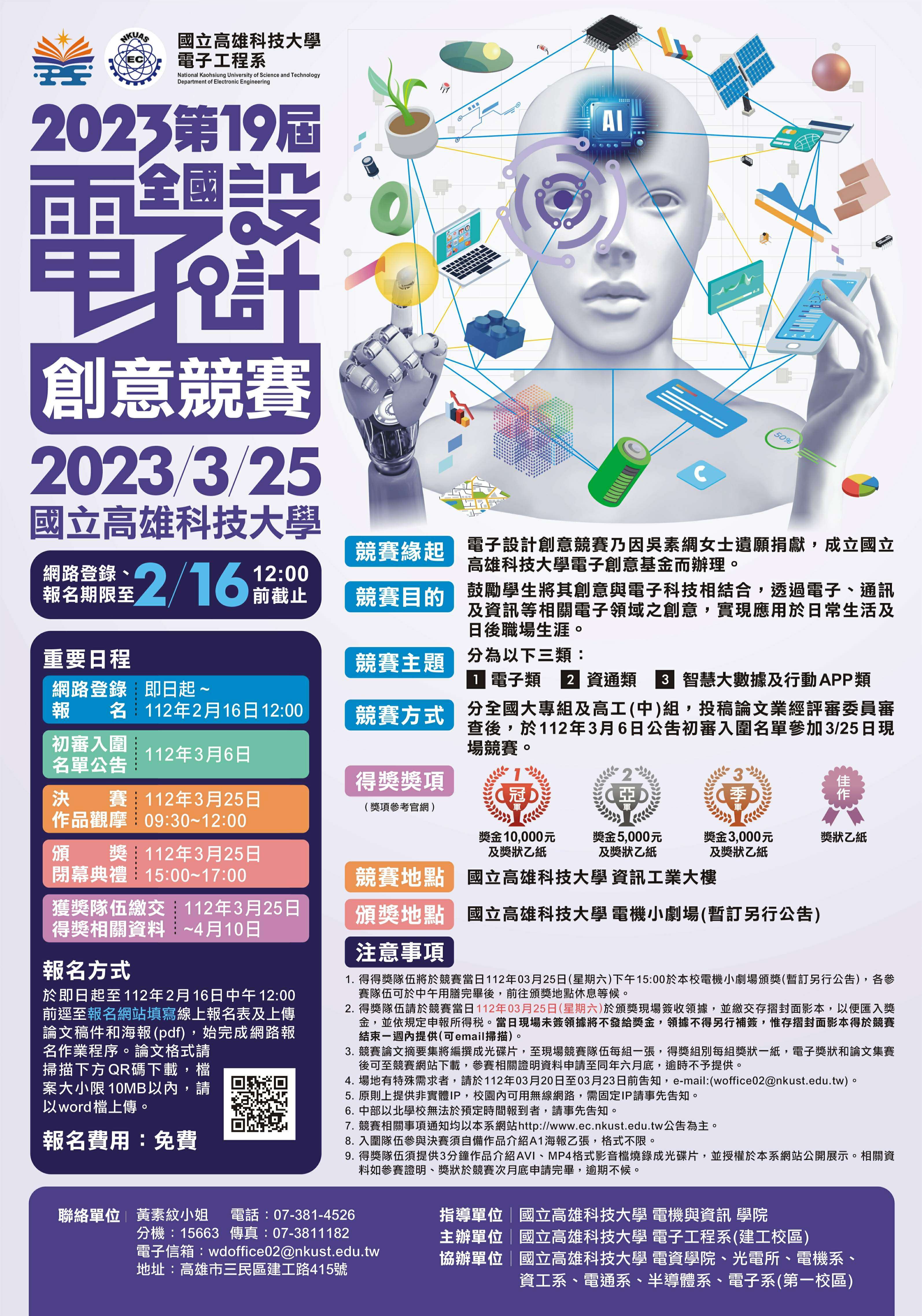 一、本屆全國電子設計創意競賽資訊公告於本校電子工程系網站—