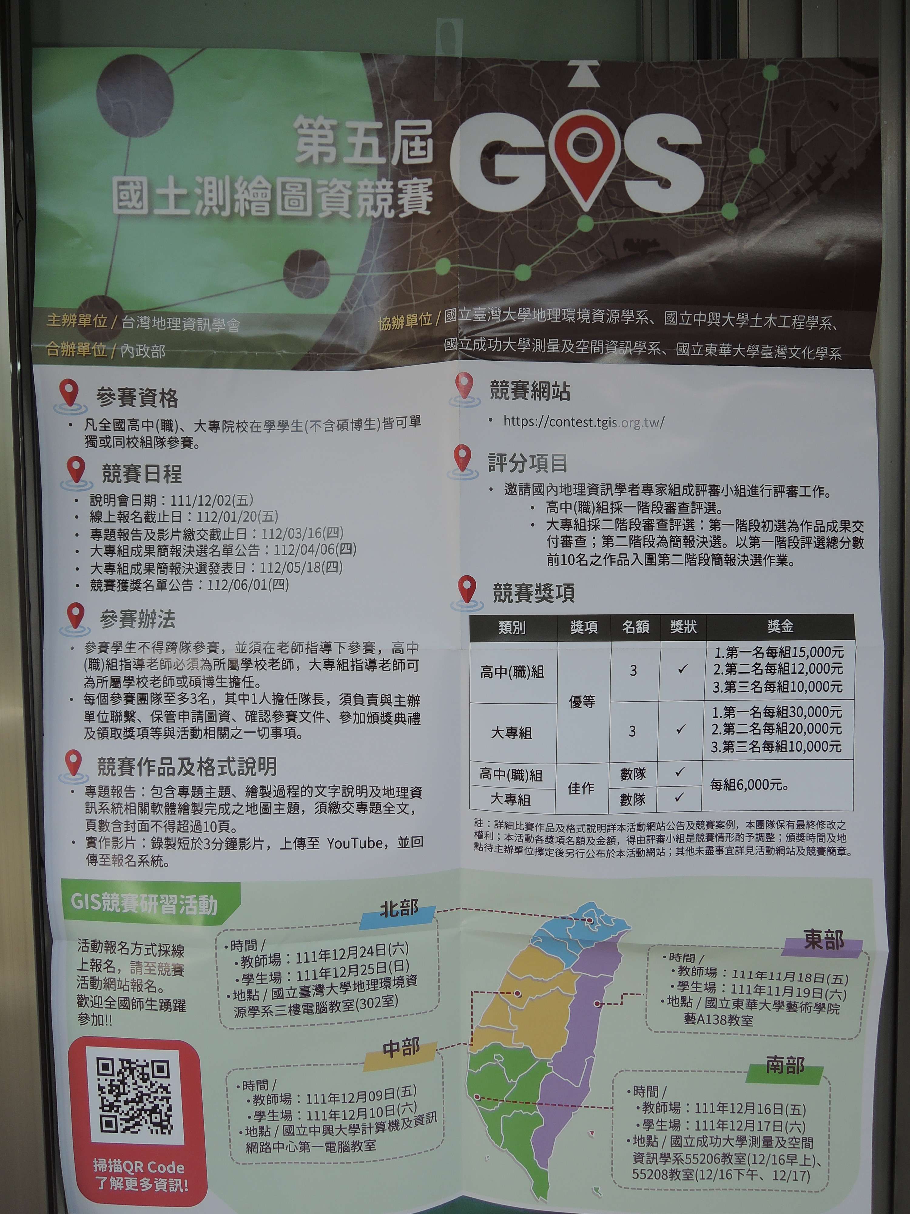 台灣地理資訊學會與內政部合作舉辦第 5 屆「國土測繪圖資GIS競賽」,
