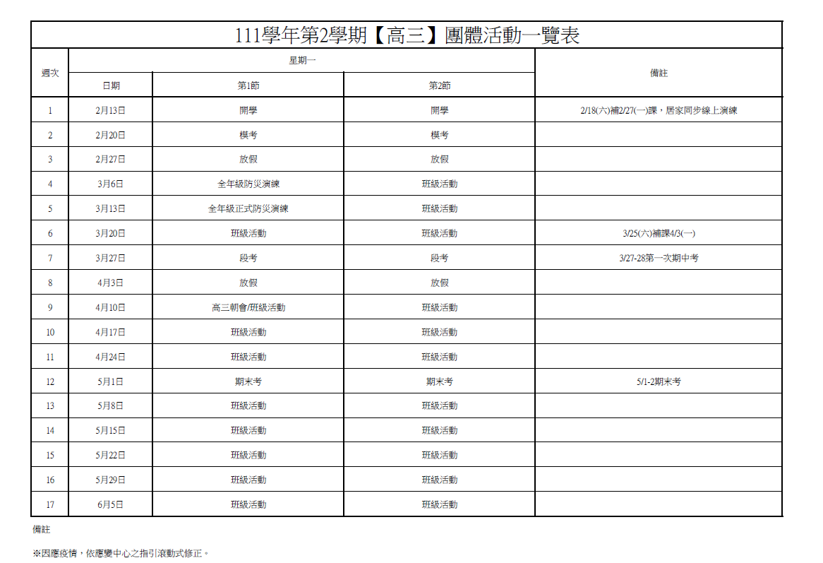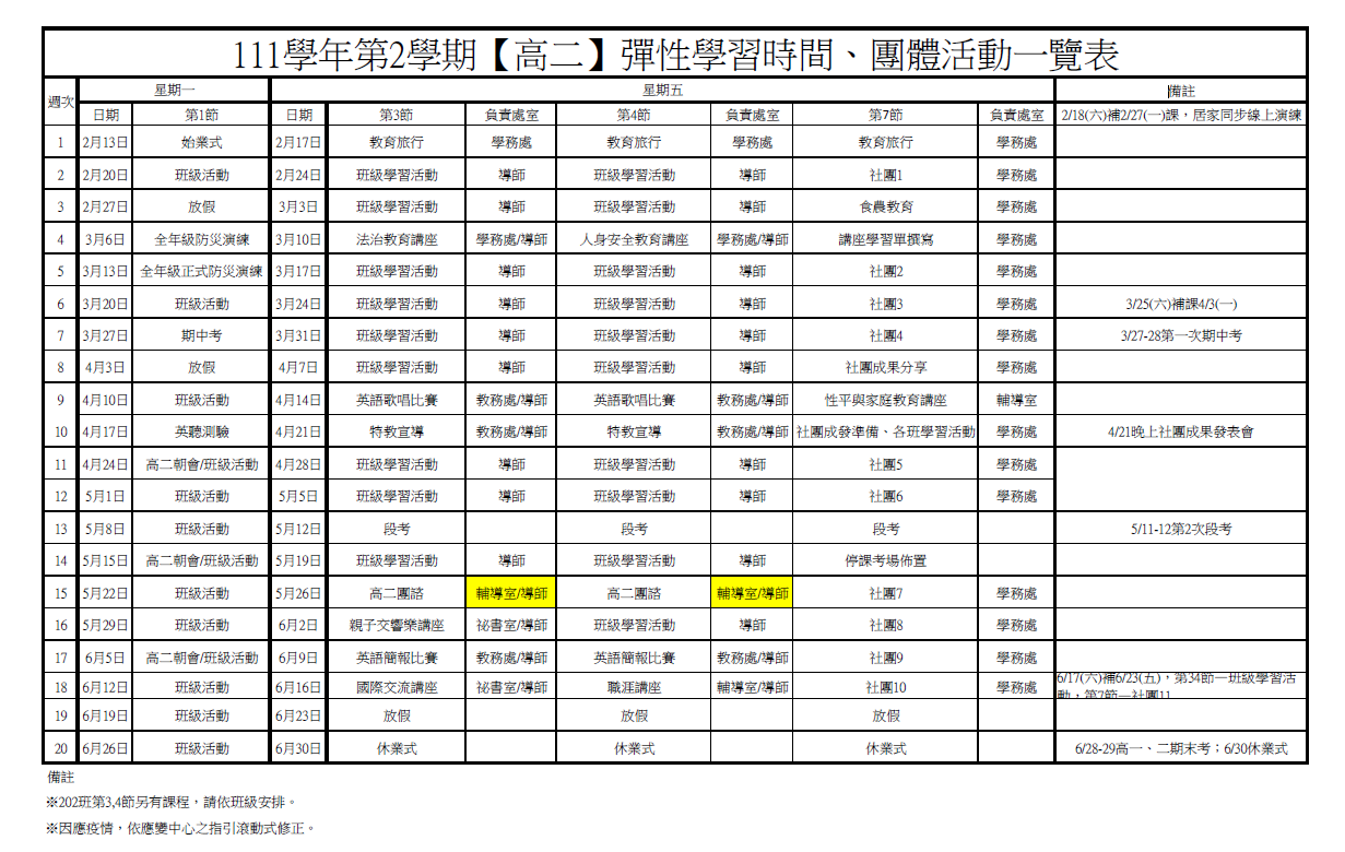 5月26日(五)第三、四節 高二團諮 (輔導室與導師)