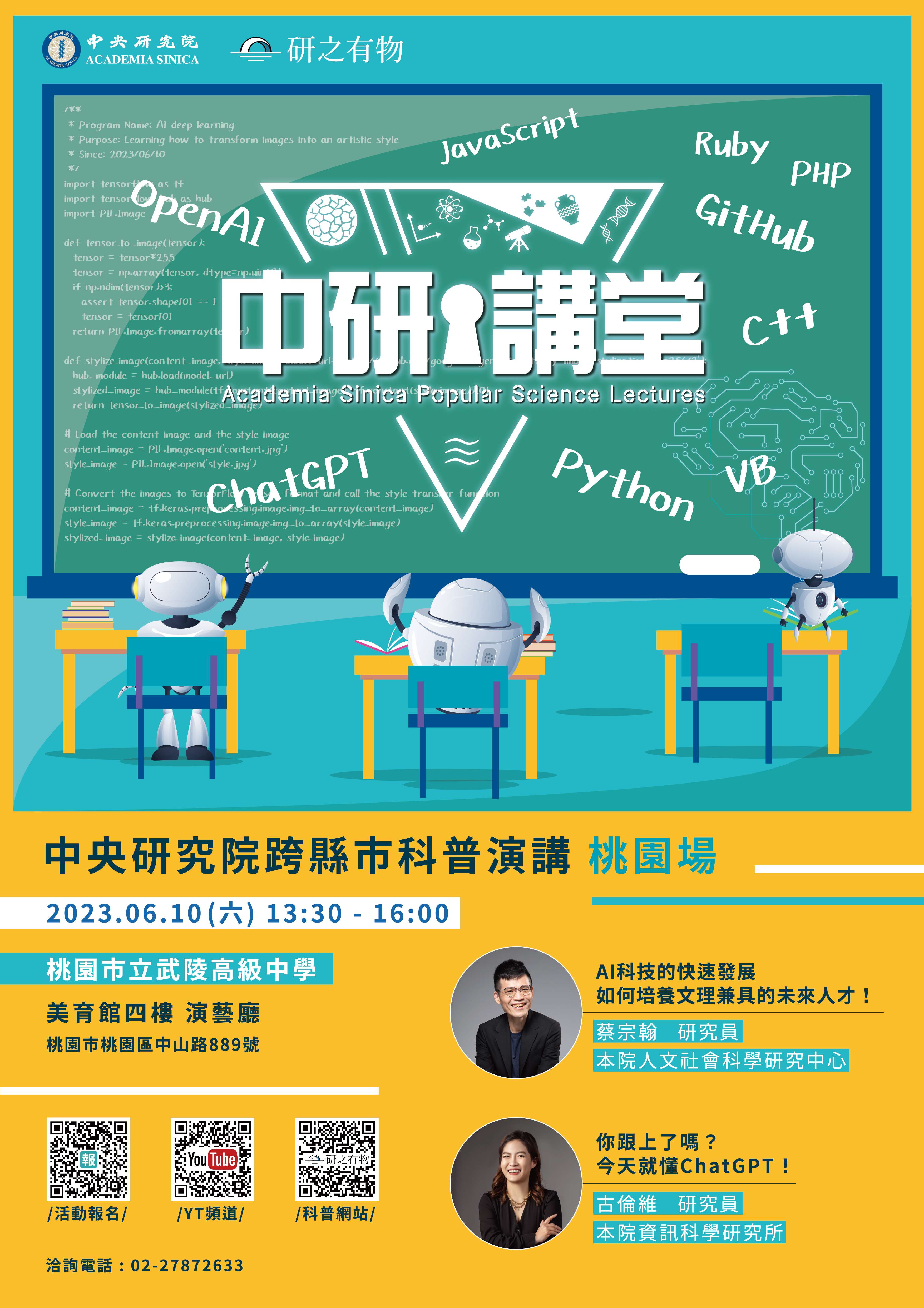 講題「AI科技的快速發展,如何培養文理兼具的未來人才!」。