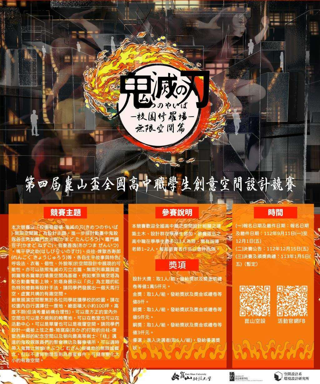 一、競賽主題「校園修羅場-鬼滅之刃-無限空間篇」,競賽的目的在提昇學生想像力,