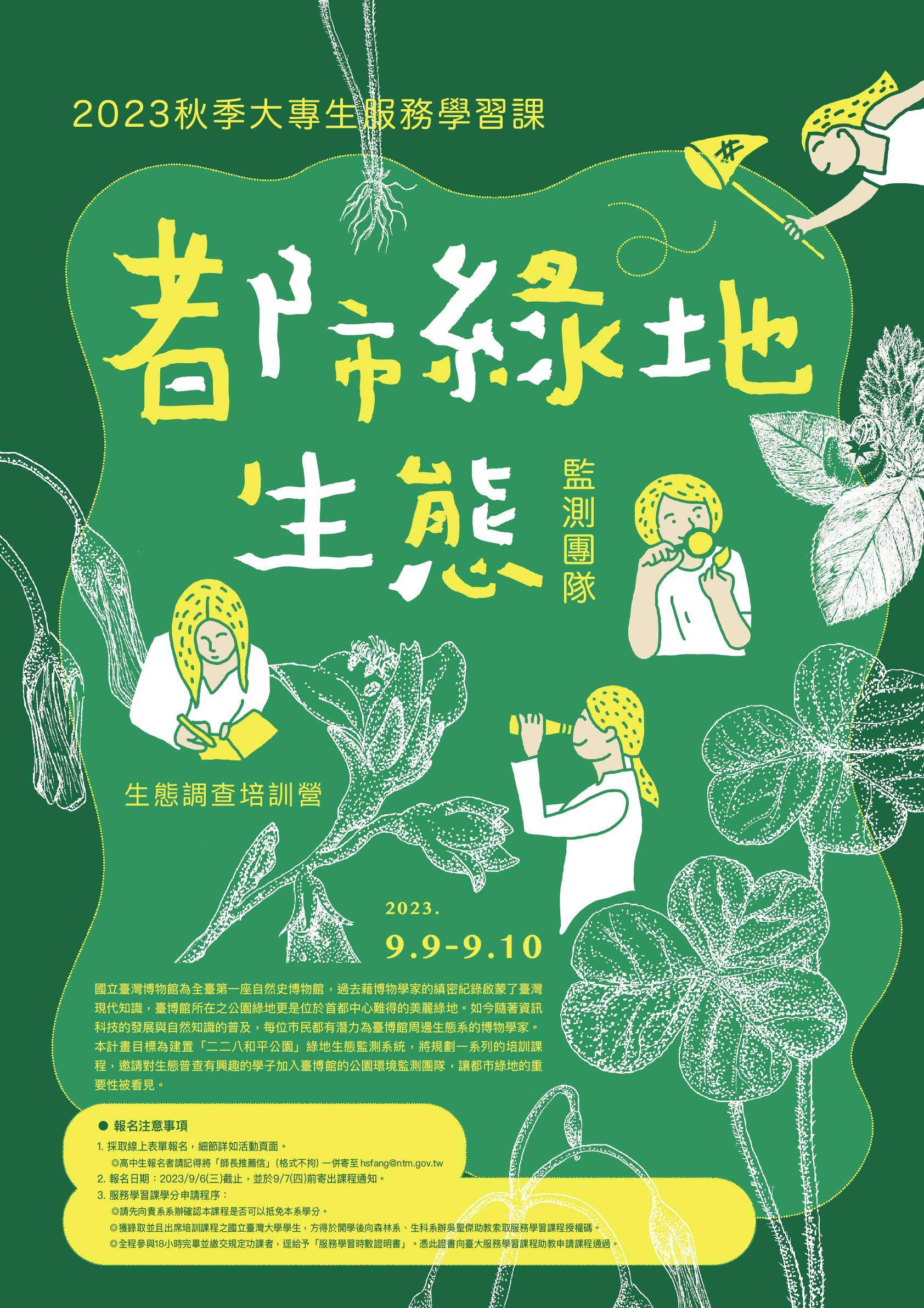 (信件主旨請填「報名臺博館都市綠地生態監測團隊」),