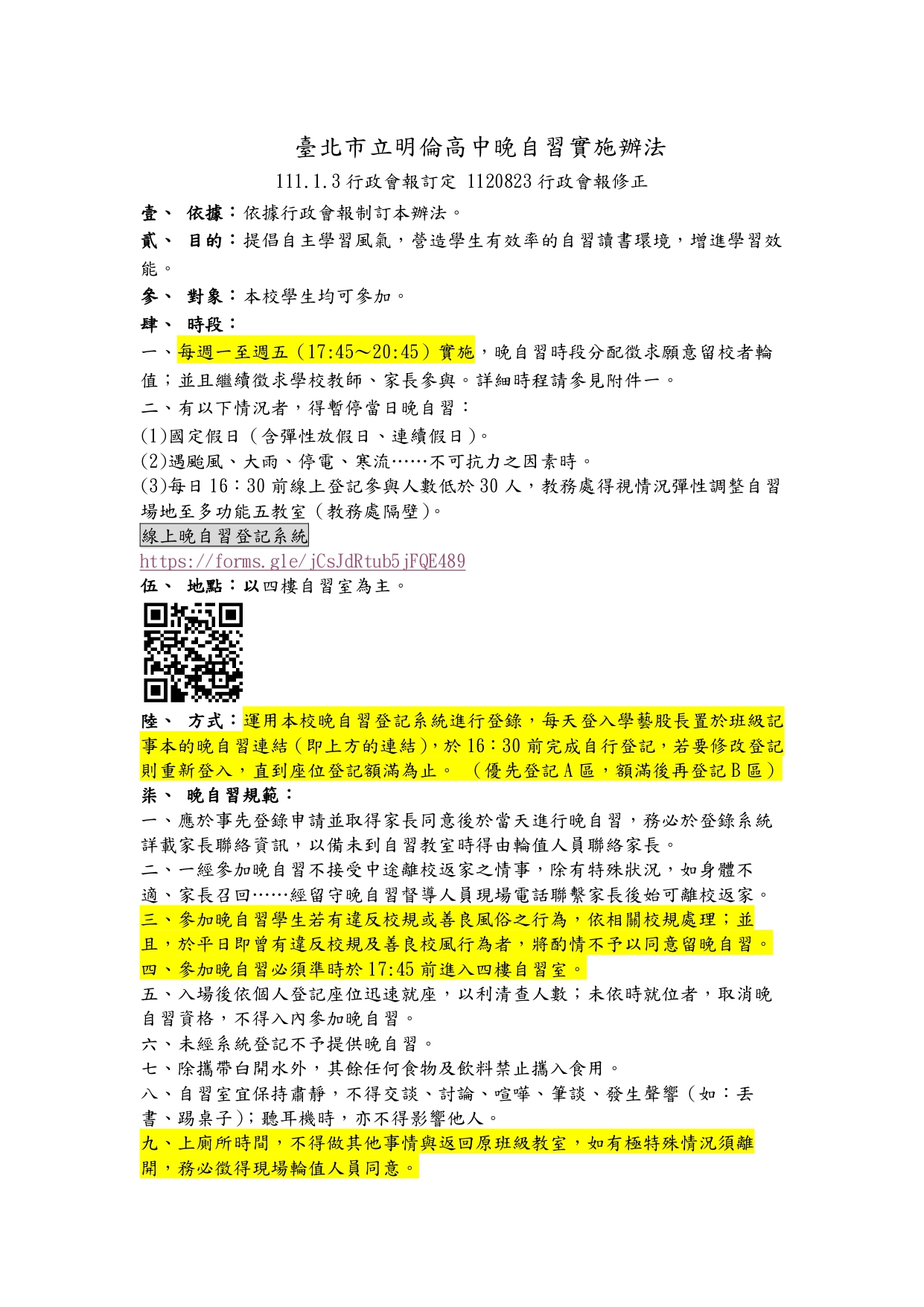 112-1明倫高中晚自習登記系統 112-1明倫高中晚自習實施辦法