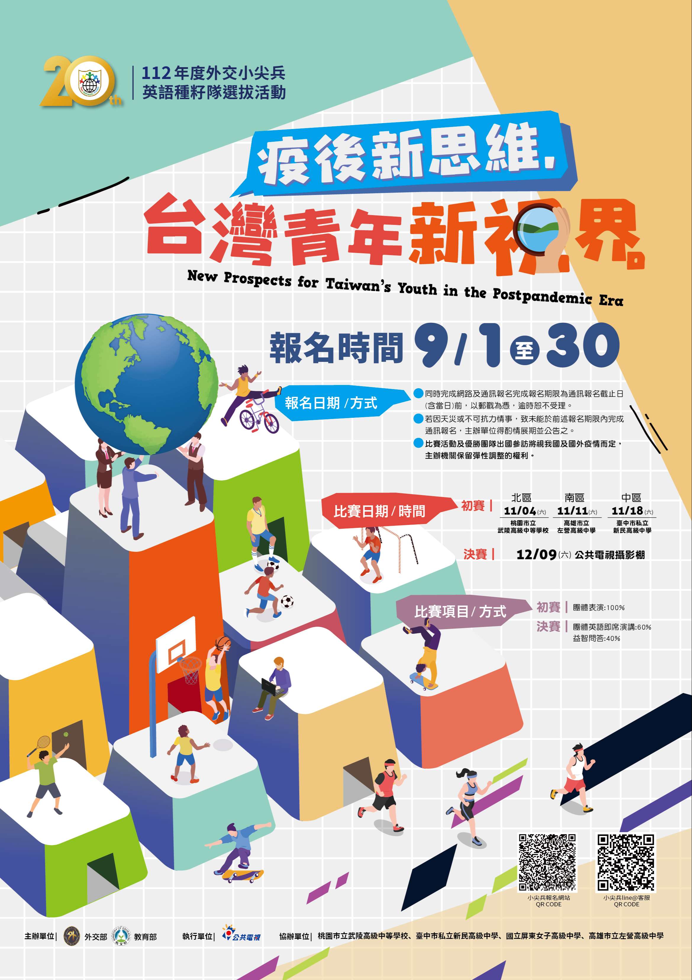 (二)決賽:112年12月9日(星期六),地點將公告至「外交小尖兵官方網站(https://www.youthtaiwan.net/teendiplomatic.htm)」