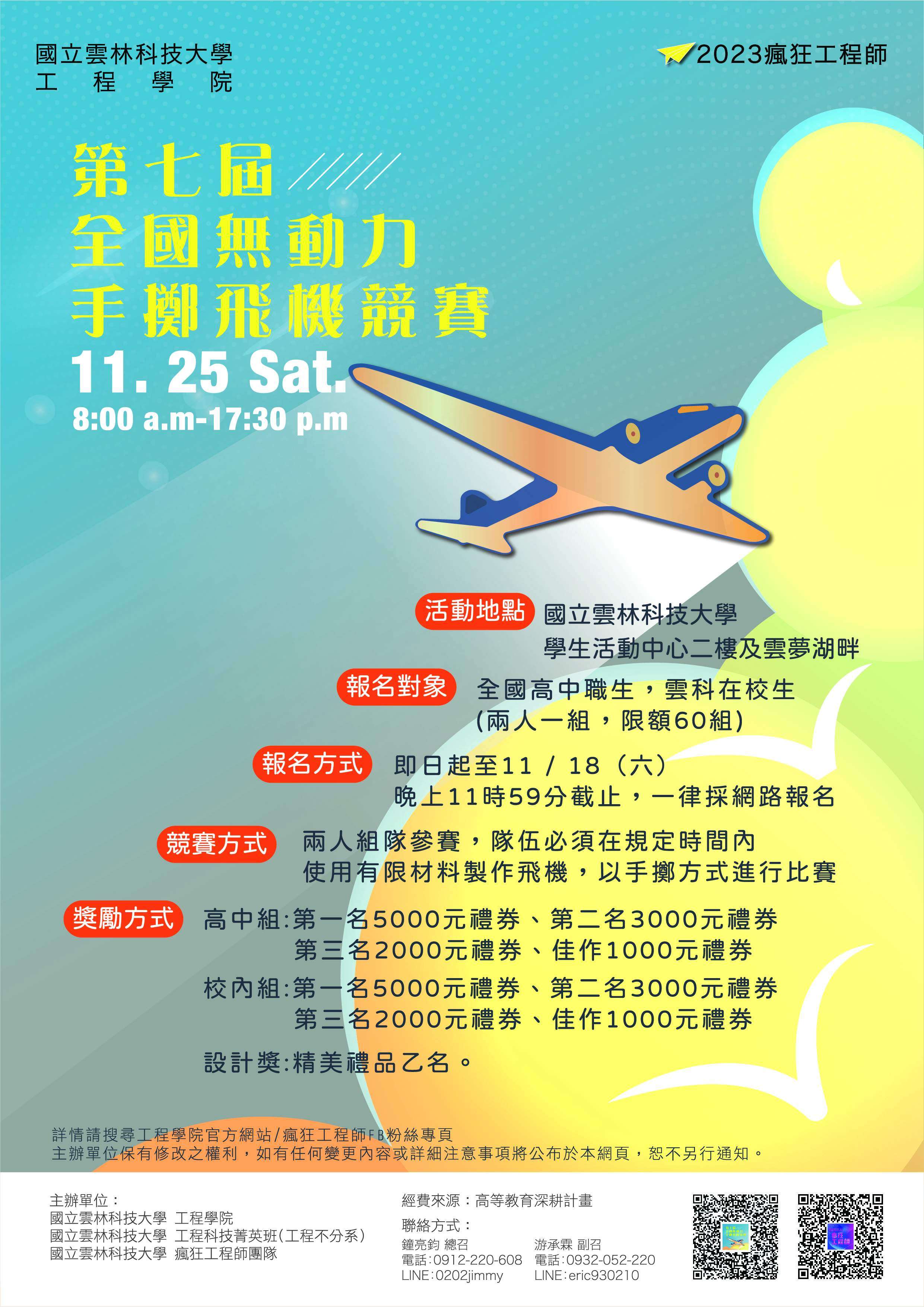 最新消息/各類活動/【競賽】2023瘋狂工程師|無動力手擲飛機。