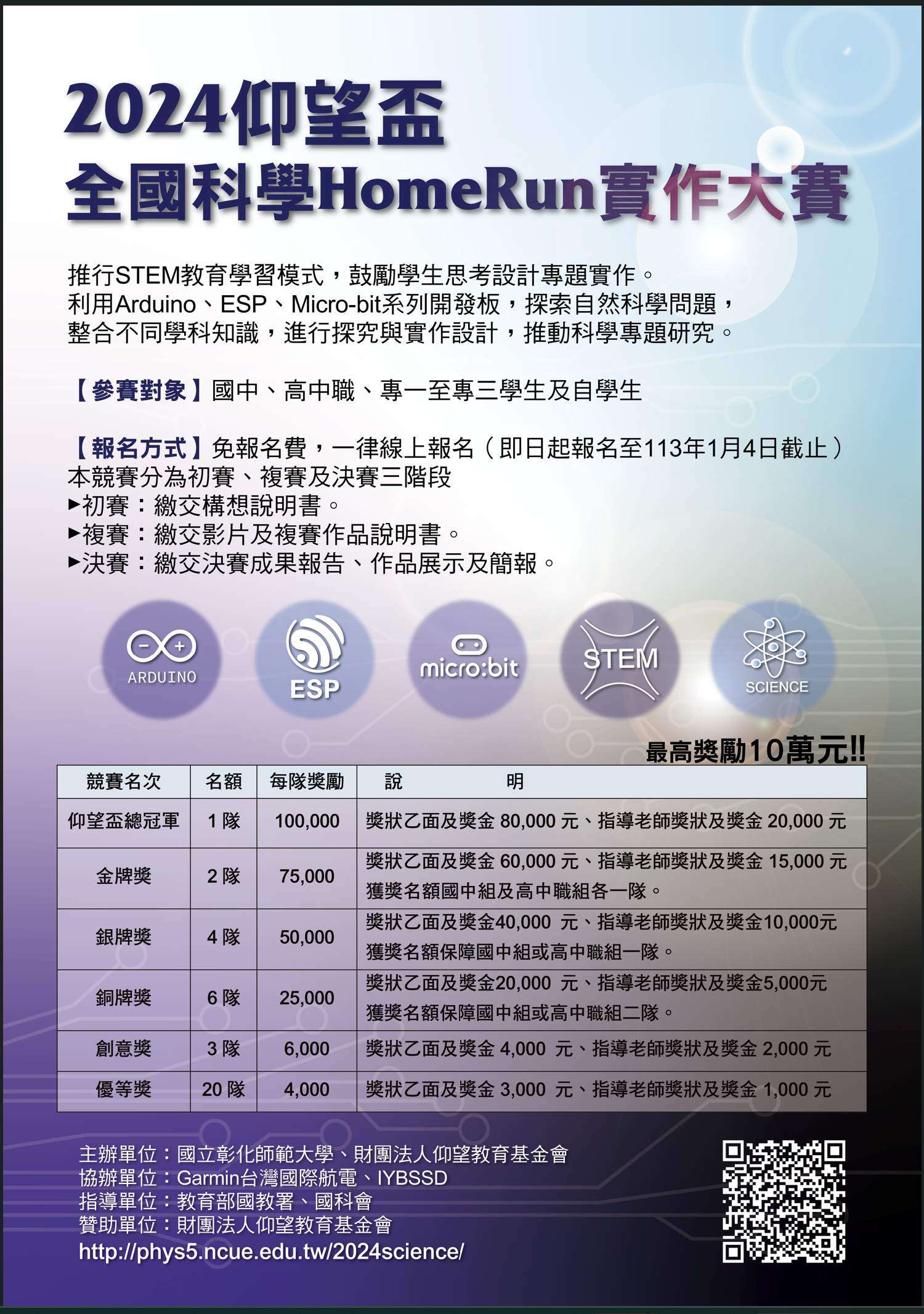 活動訂於113年5月4日(星期六),假彰師大辦理,詳細活動訊息請參閱競賽手冊。
