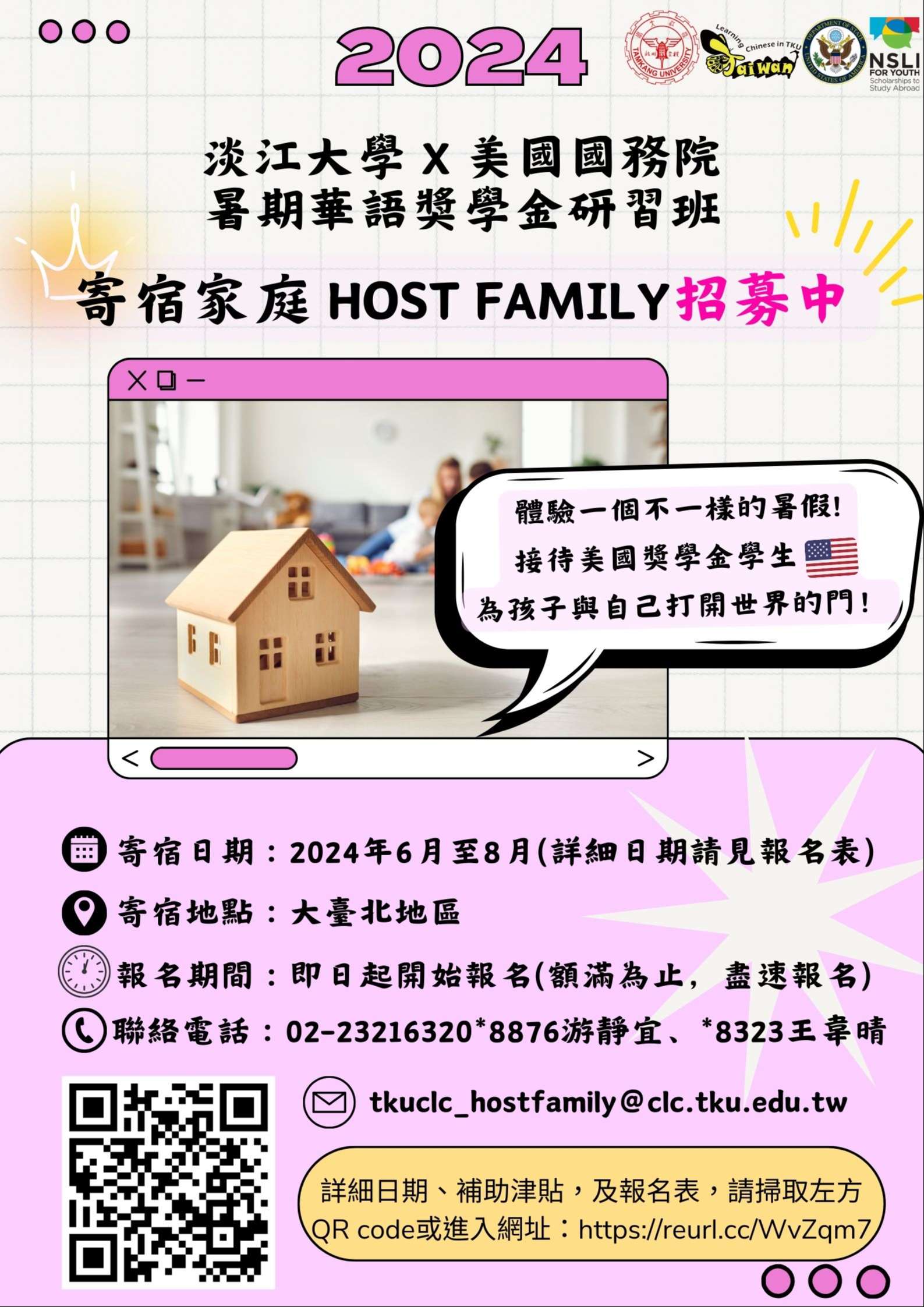 2024年暑期「美國國務院華語獎學金研習班」徵選臺灣寄宿家庭,歡迎踴躍報名,詳閱報名網址。