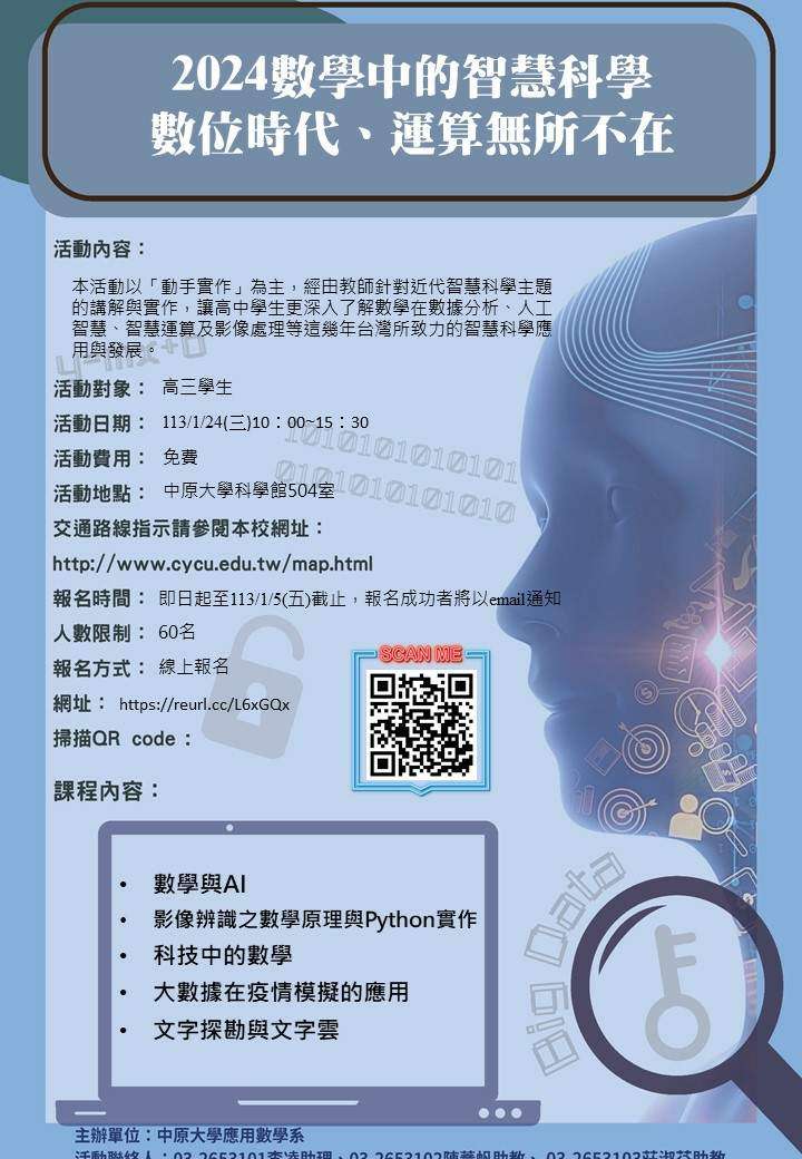 讓各位高中學生更深入了解數學在數據分析、人工智慧、智慧運算及