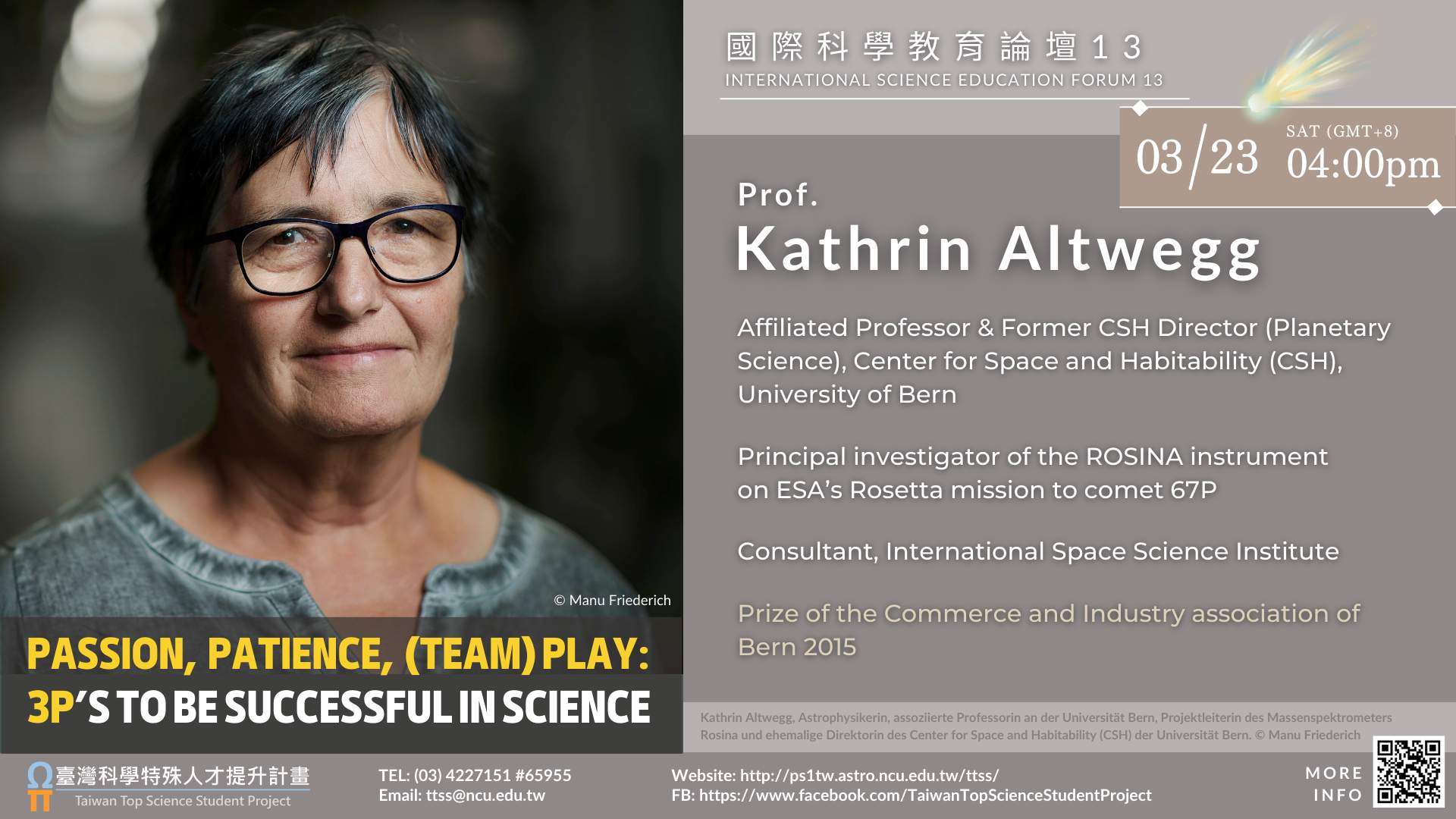 一、Prof. Kathrin Altwegg在巴塞爾大學取得實驗物理學博士學位,