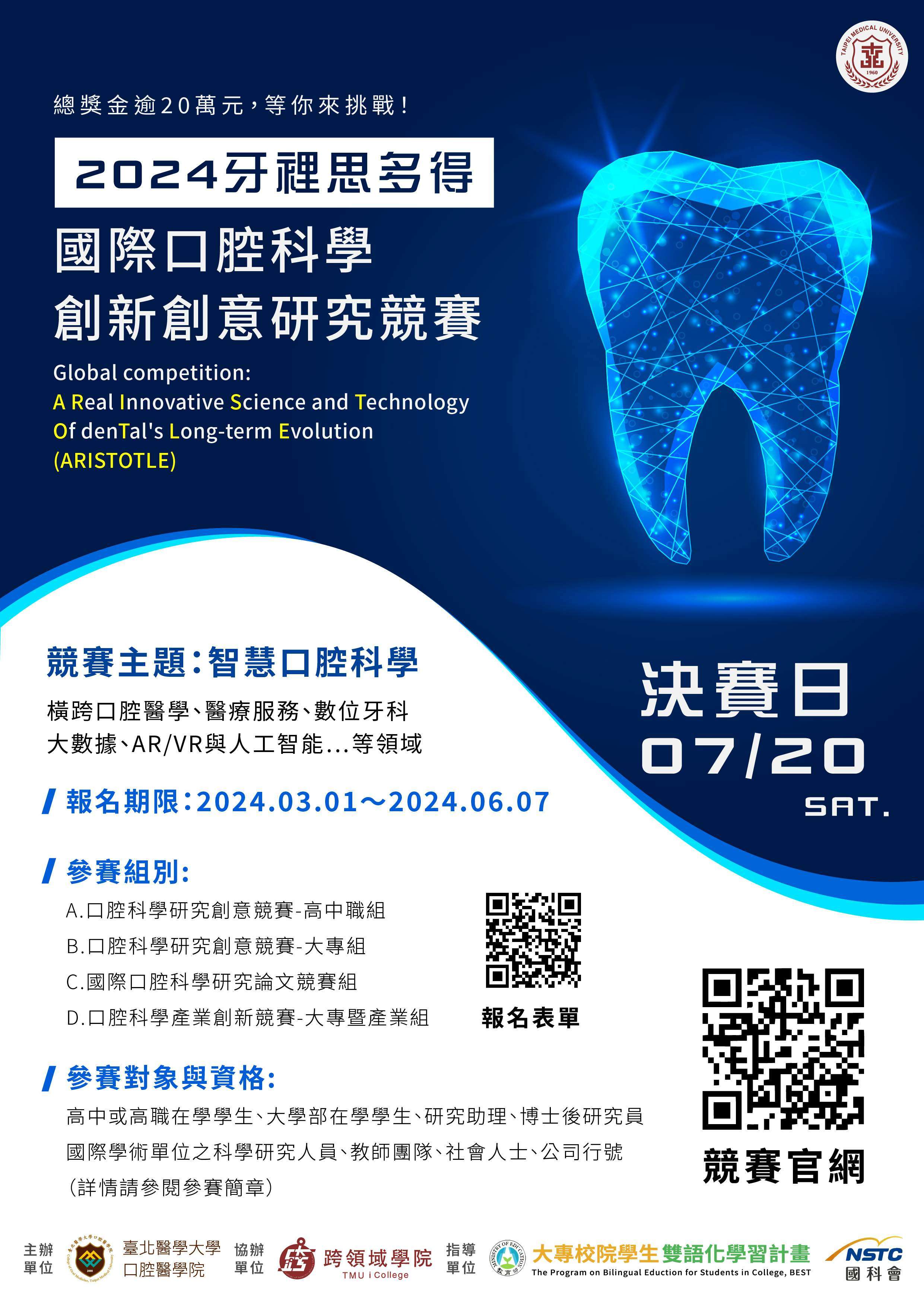 一、旨揭競賽係本校口腔醫學院主辦,以「智慧口腔科學」為主軸,