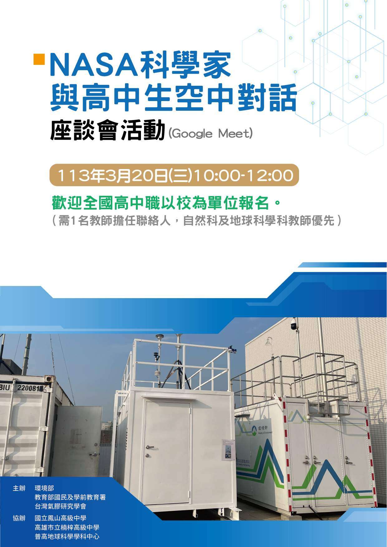 目的與工作內容,以及NASA全球環境監測任務;並同步辦理實體暨線上座談,