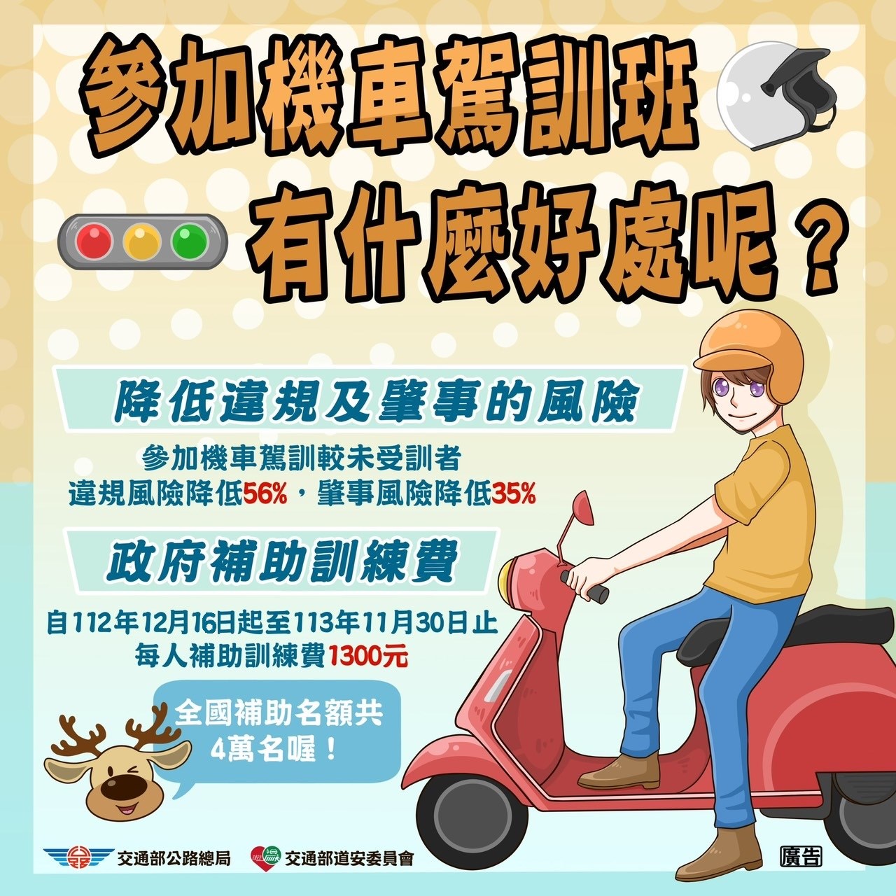 交通部公路局辦理「推動機車駕訓制度」補助計畫,