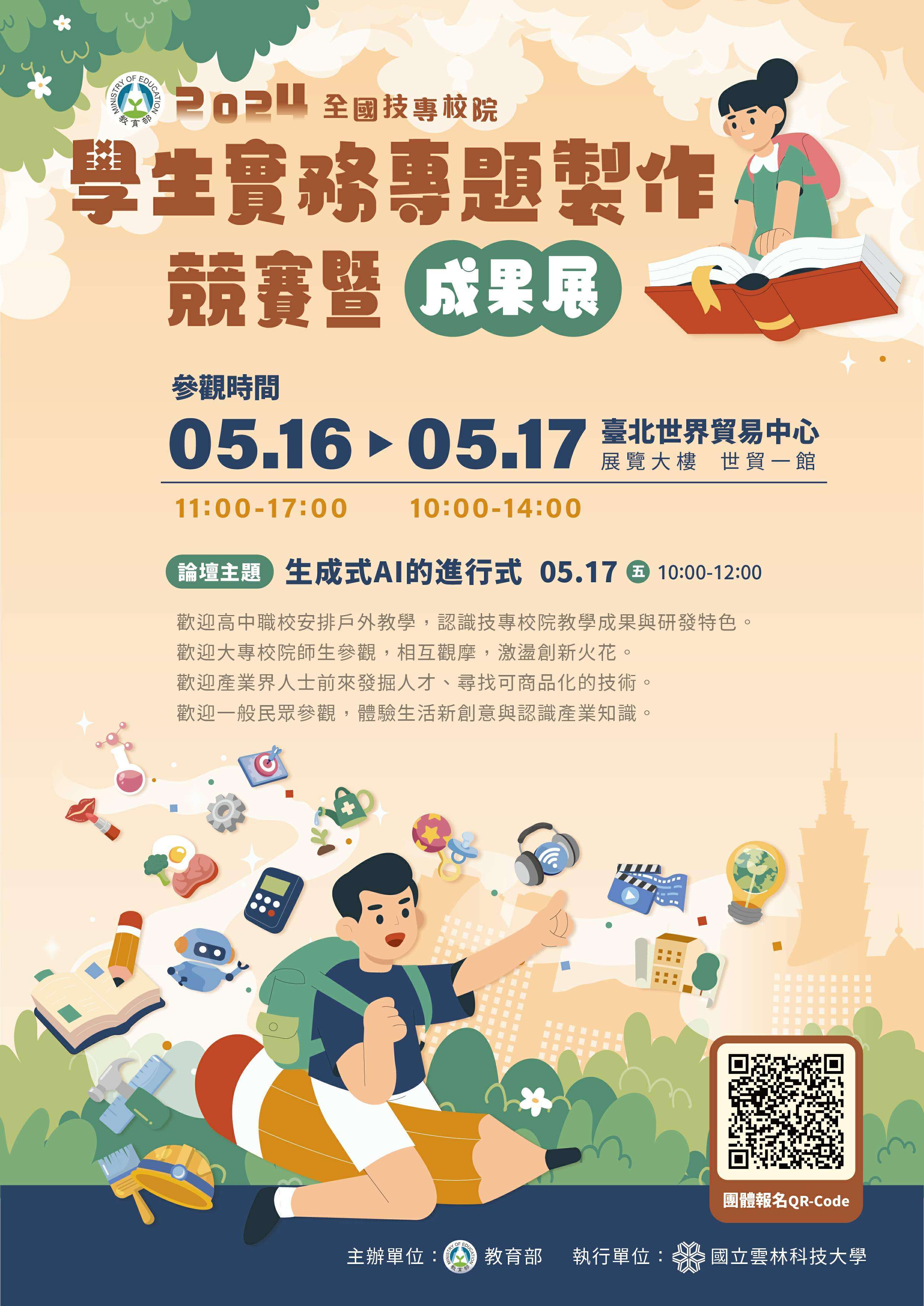 舉辦「2024年全國技專校院學生實務專題製作競賽暨成果展」,活動海報詳如附件。
