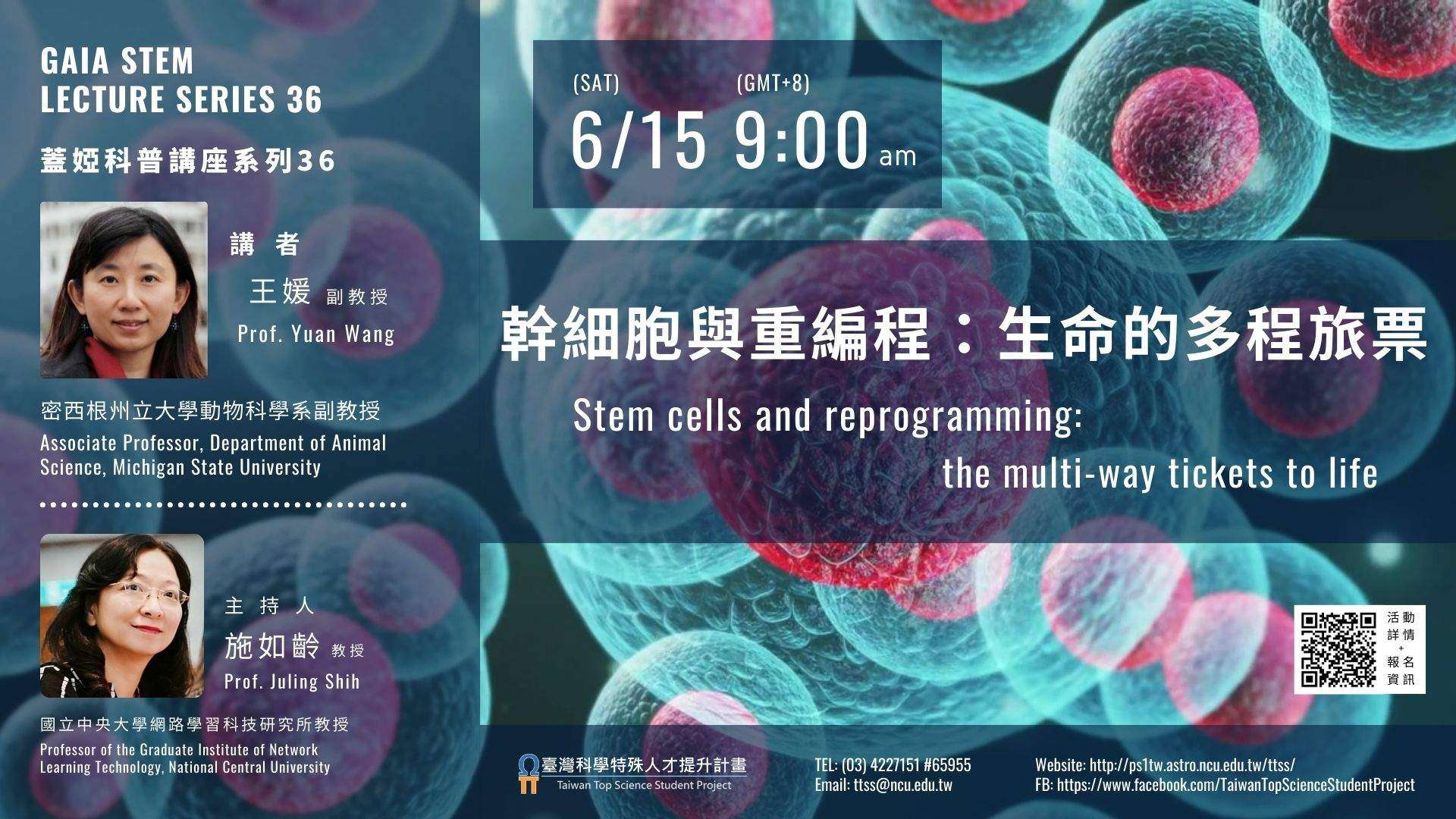 (二)講題:幹細胞與重編程:生命的多程旅票。