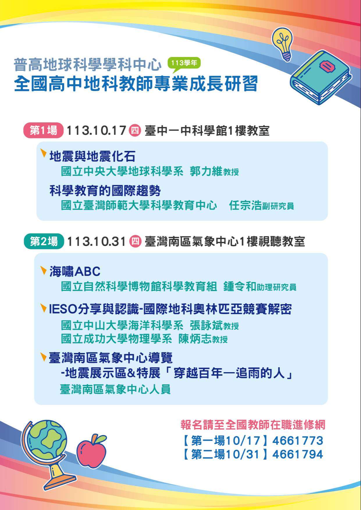 六、未盡事宜,請洽詢地球科學學科中心,電話07-2115418分機666、667。