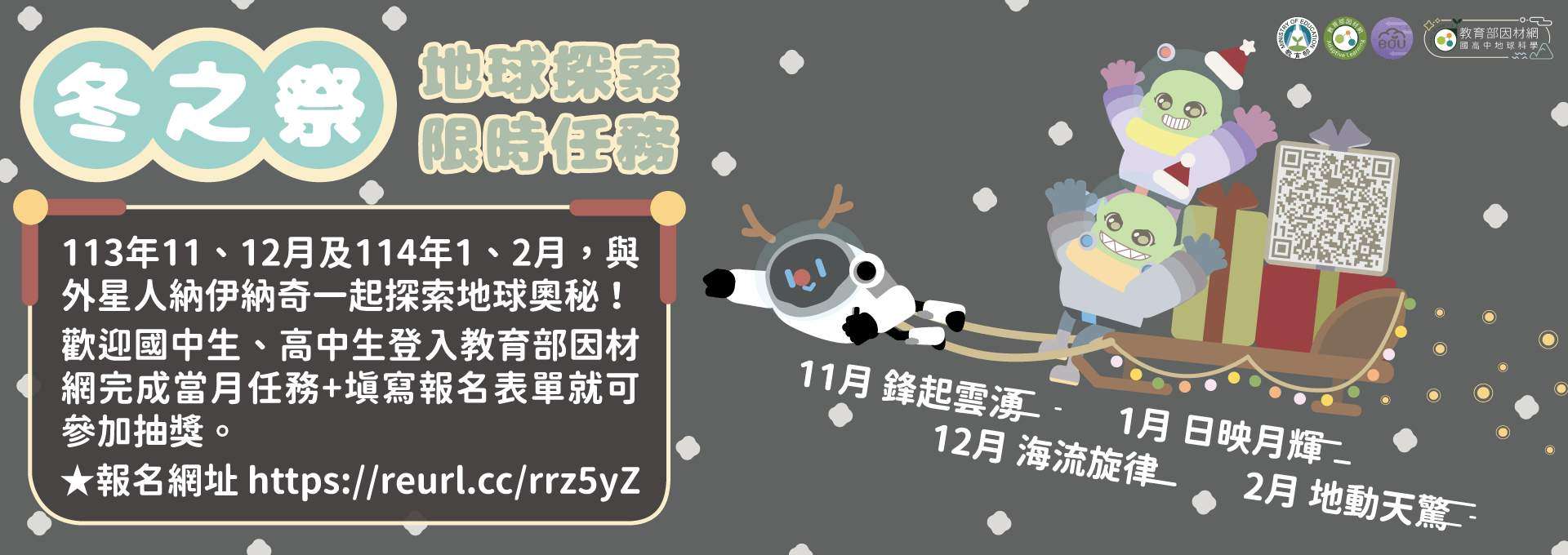 自113年11月11日起至114年2月28日特辦理「冬之祭——地球探索限時任務」