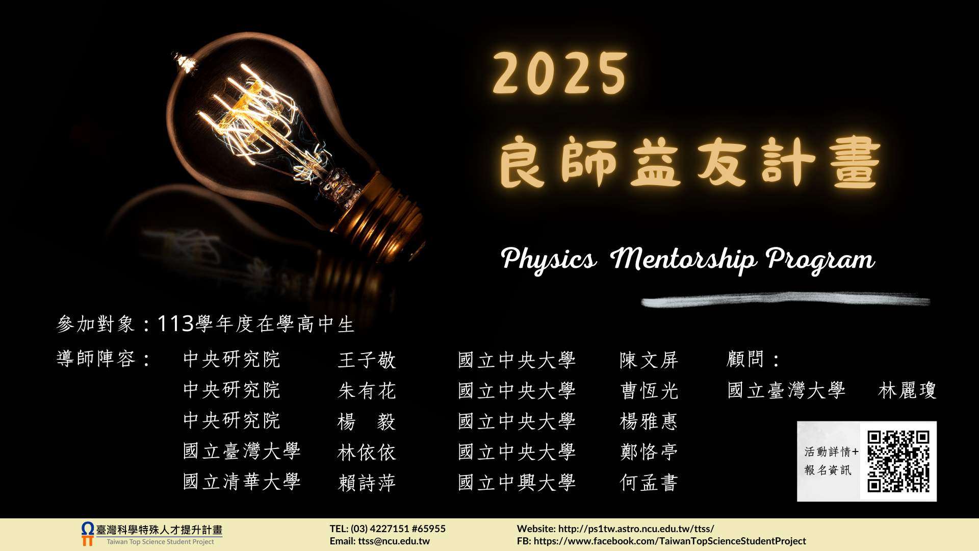 報名網址:https://ps1tw.astro.ncu.edu.tw/ttss/index.php/2025pmp/。