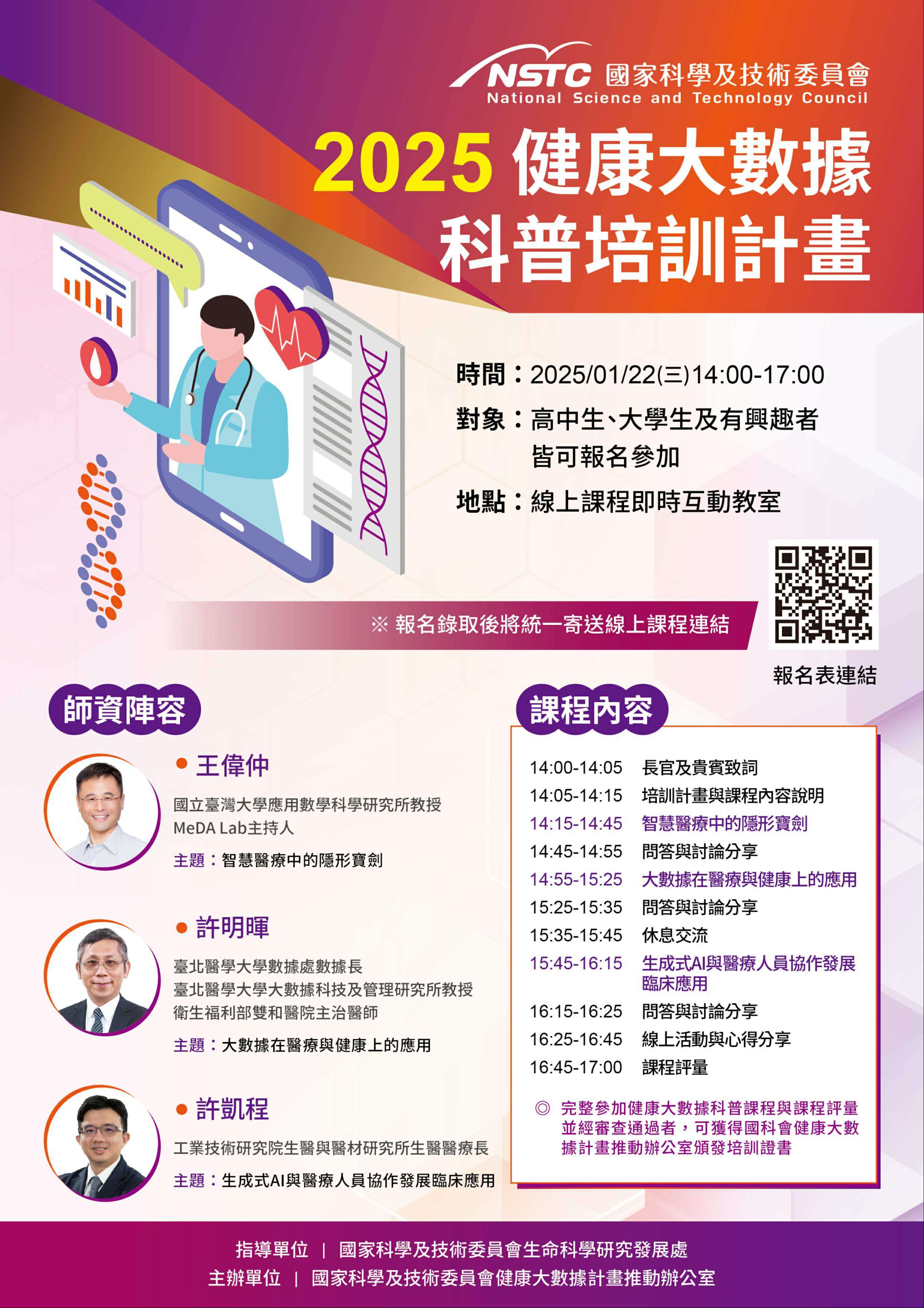 健康大數據科普培訓計畫報名連結https://pse.is/6ssdka,