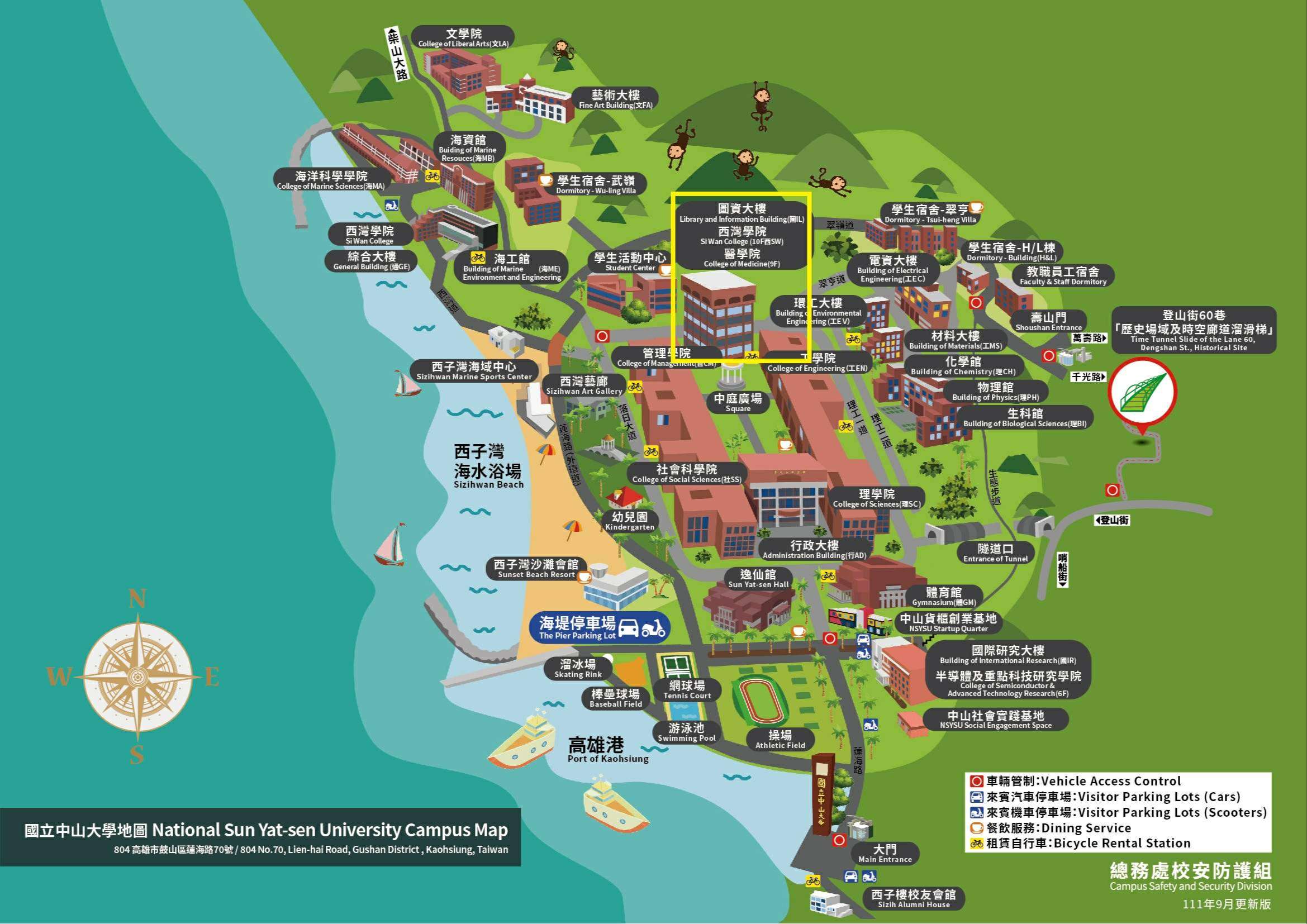 轉騎YouBike或步行15分鐘至國立中山大學圖資大樓;