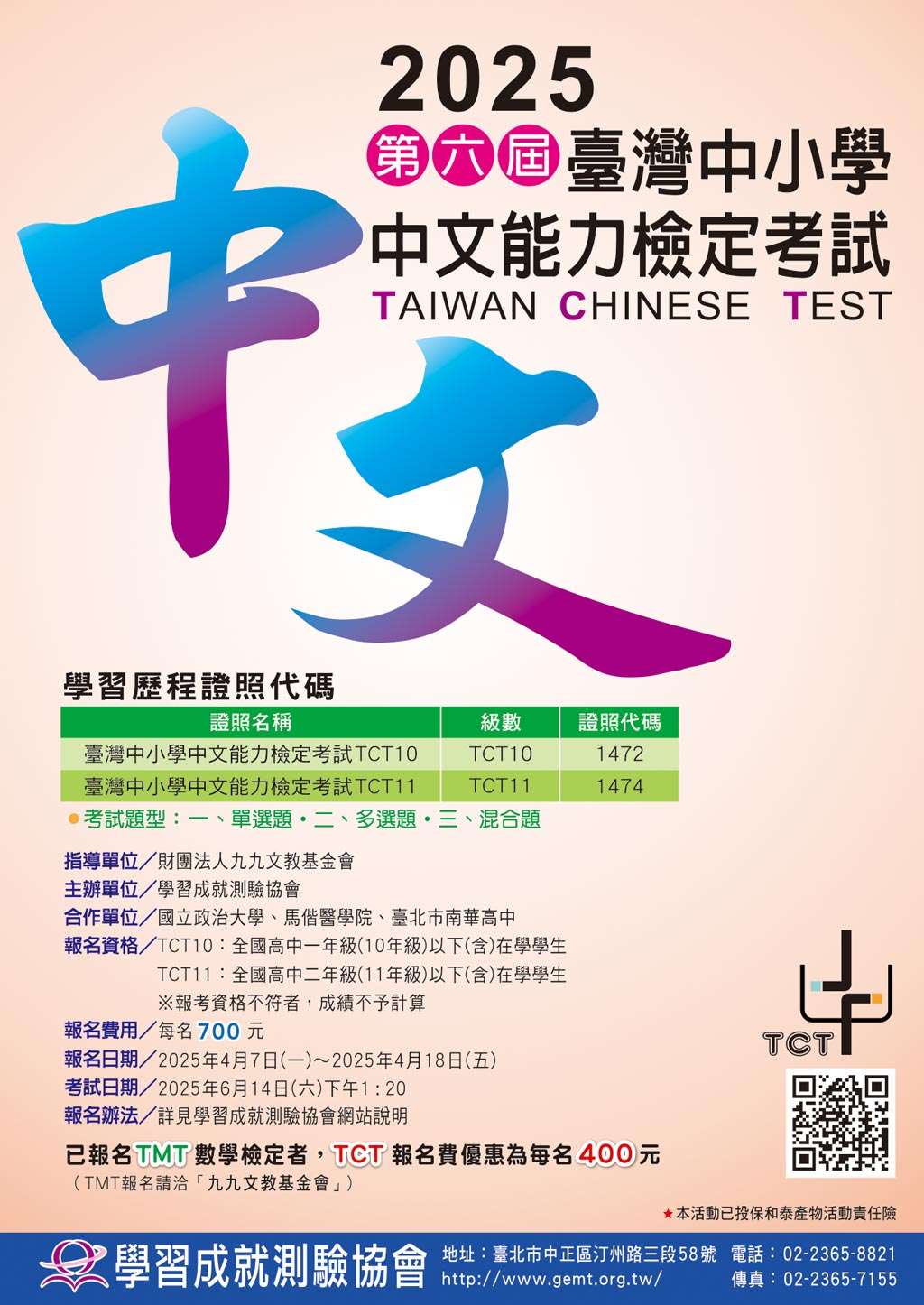 二、報名資格:TCT10-10年級(高中一年級)以下(含)在學學生、TCT11-11年級(高中二年級)以下(含)在學學生