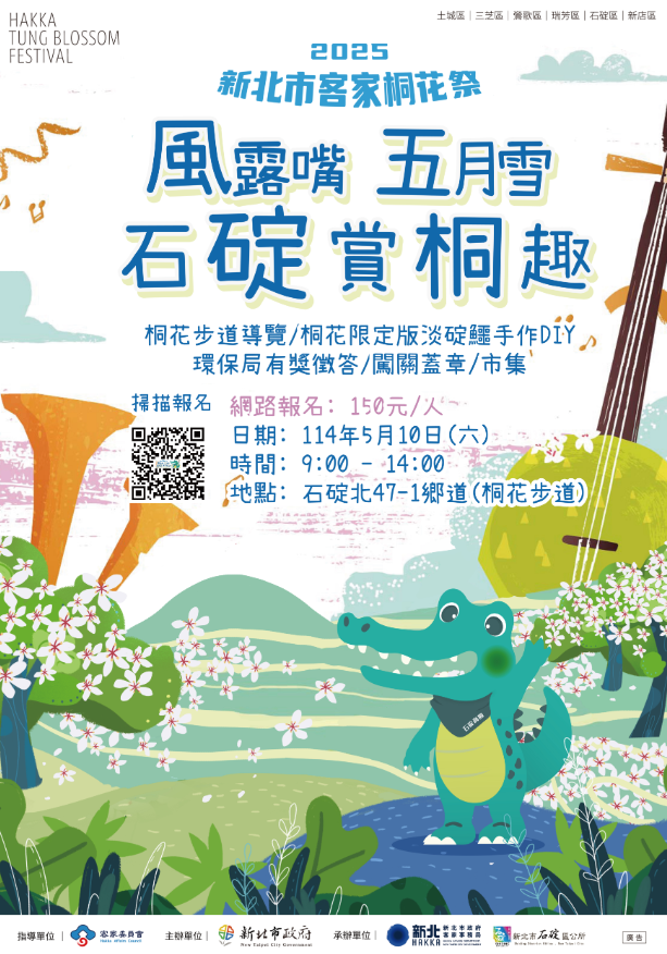 二、本活動謹訂於114年5月10日(星期六)上午9時至下午2時辦理,地點位於風露嘴(北宜路5段80號),沿線賞桐、導覽、桐花限定版手作DIY,活動詳情請參閱(https://ntpchakka-tungblossom.com/)。