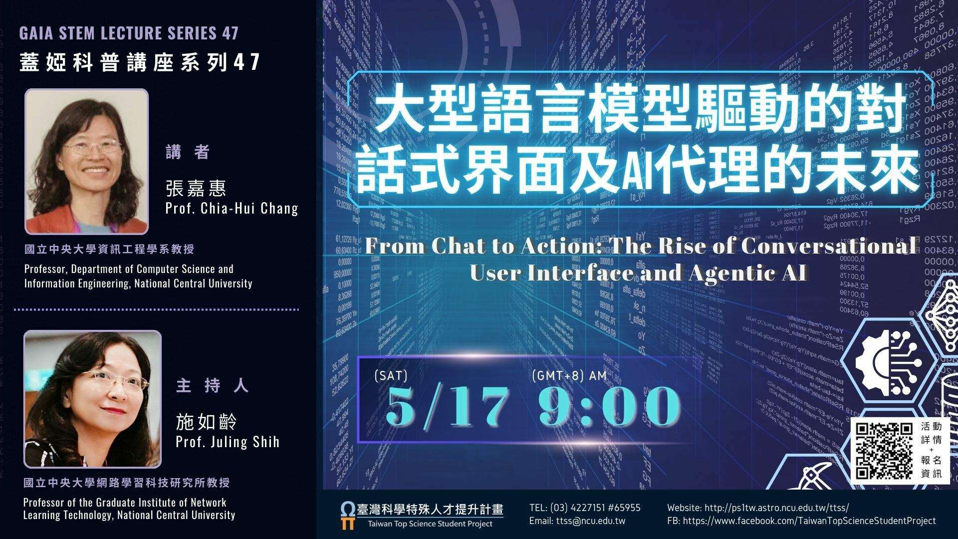 本次演講將透過大型語言模型驅動的對話式界面及AI代理切入,