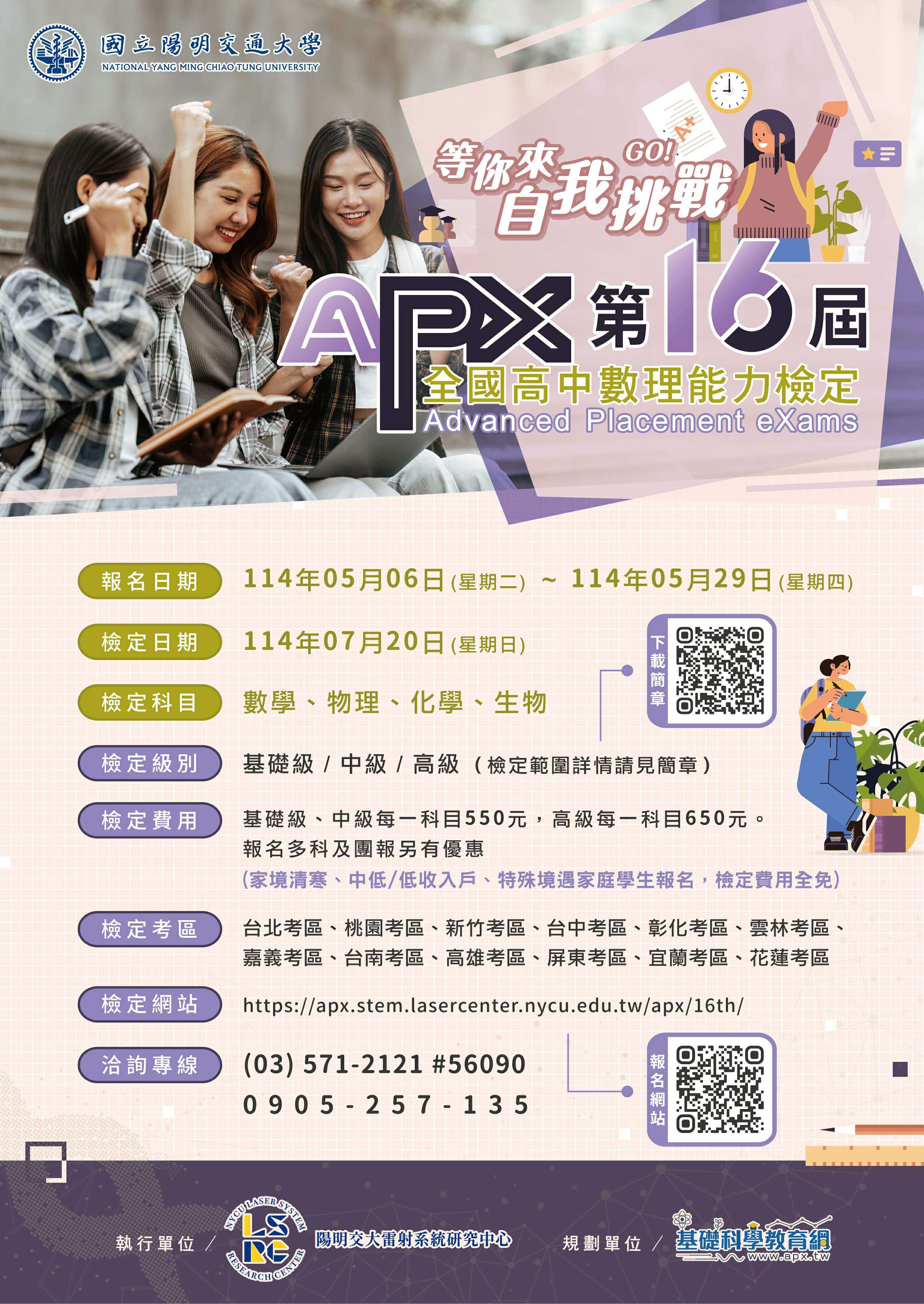 一、檢附APX全國高中數理能力檢定第十六屆報名簡章及海報。