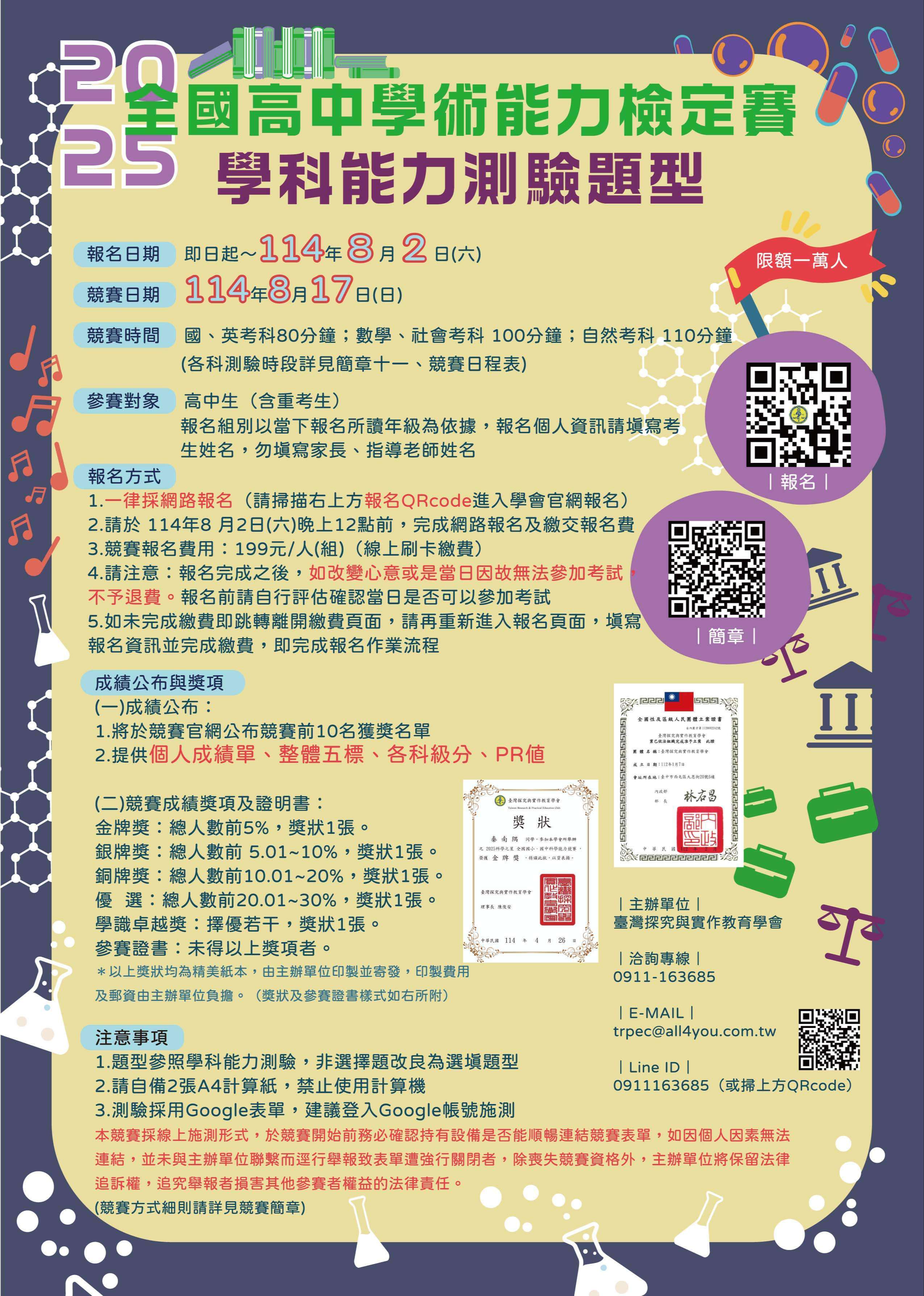 三、競賽日期:114年8月17日(日)上午09:00至16:40