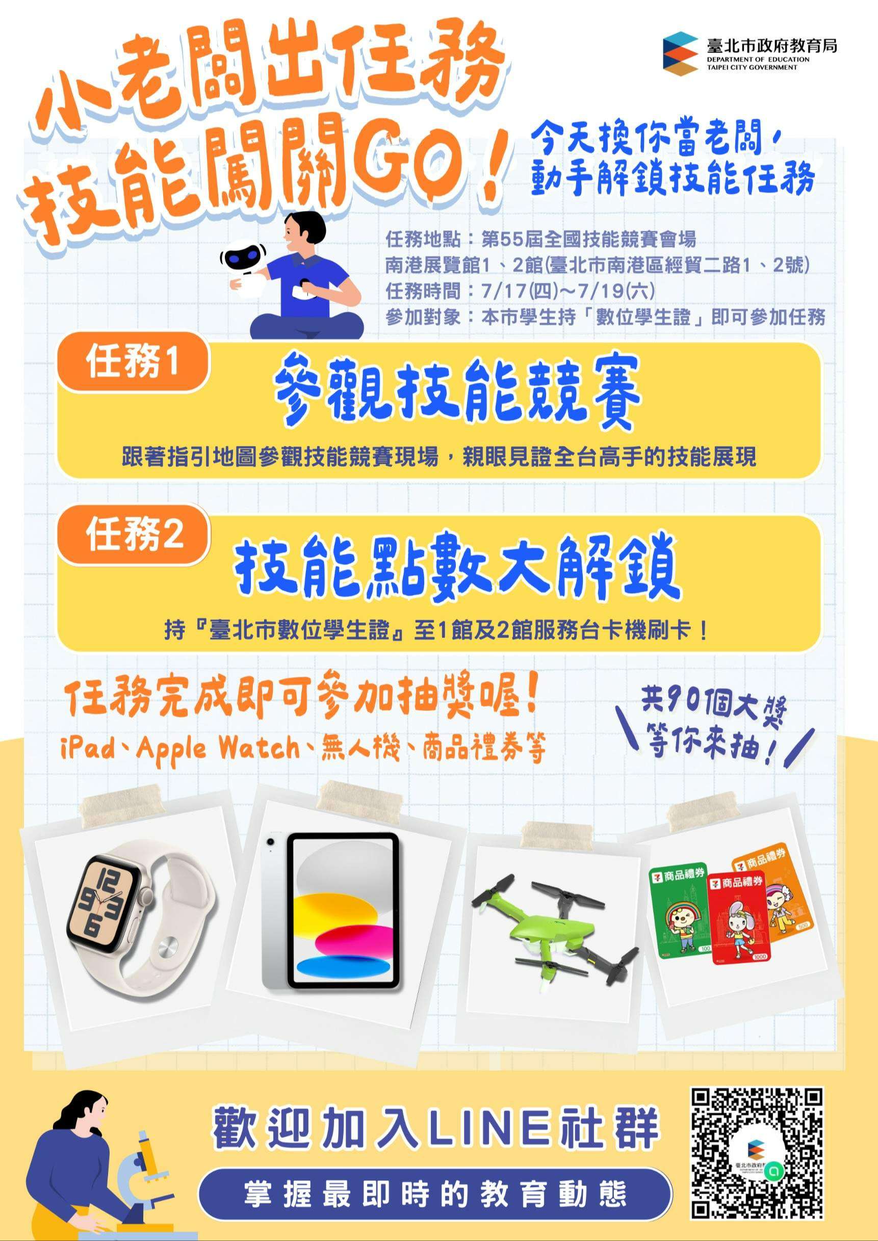 四、現場提供本市學生限定好禮抽獎活動,凡臺北市各級學校學生參觀技能競賽,