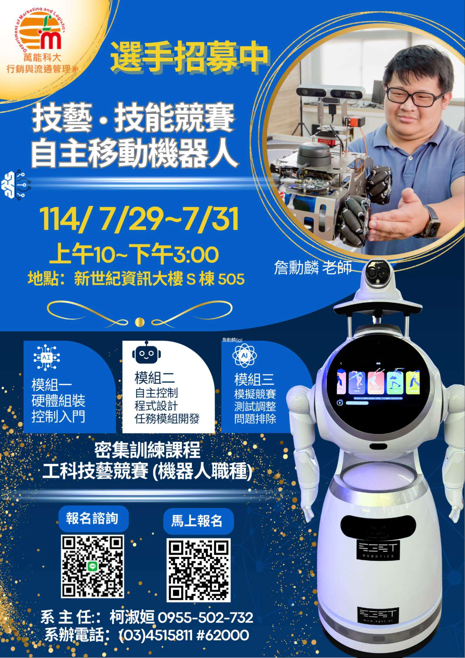 下午3點開設工科技藝競賽(機器人職種)密集訓練課程,請參閱附件。