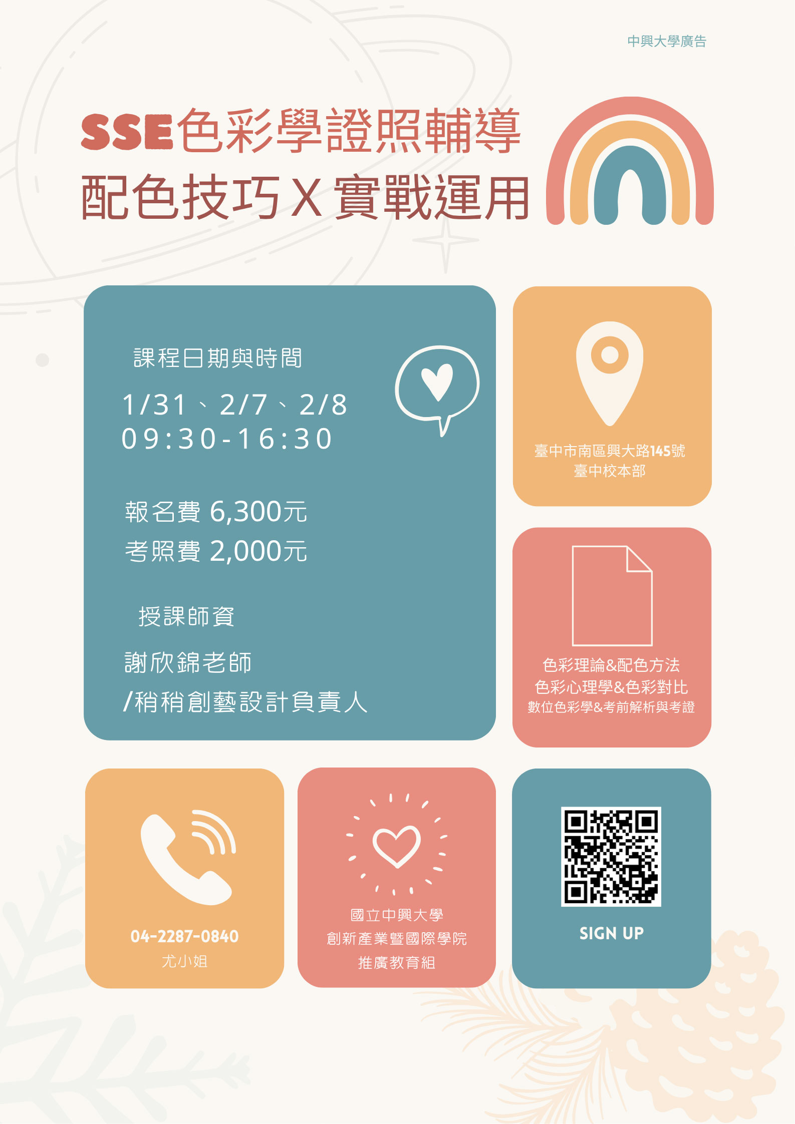 (三)色彩學國際SSE證照輔導:1月31日、2月7日、2月8日三日營。