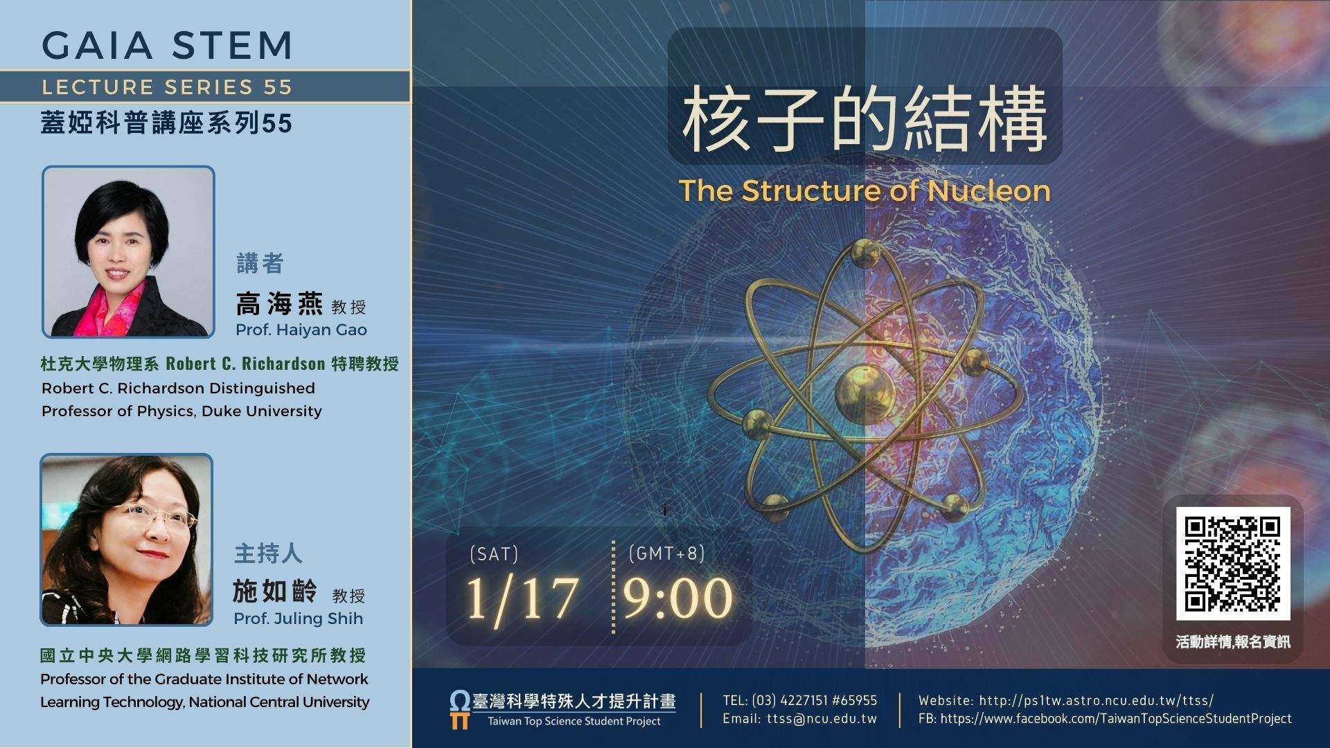 高教授致力於研究核子的結構,核子影響著原子核的性質與穩定,