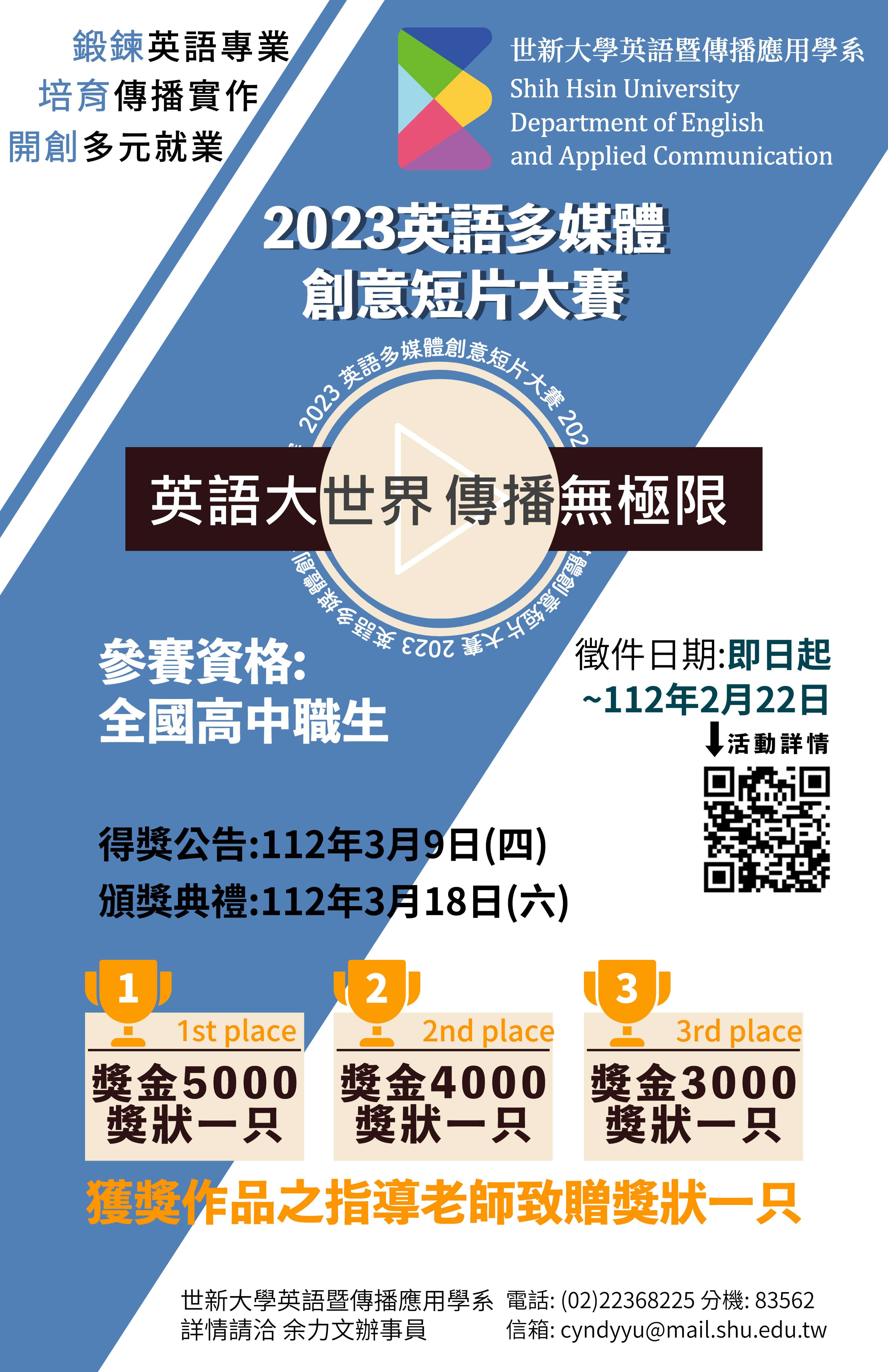 一、收件時間:即日起至112年2月22日(星期三)。 二、活動網址:https://reurl.cc/EX6dng 三、檢附比賽辦法與海報各1份。